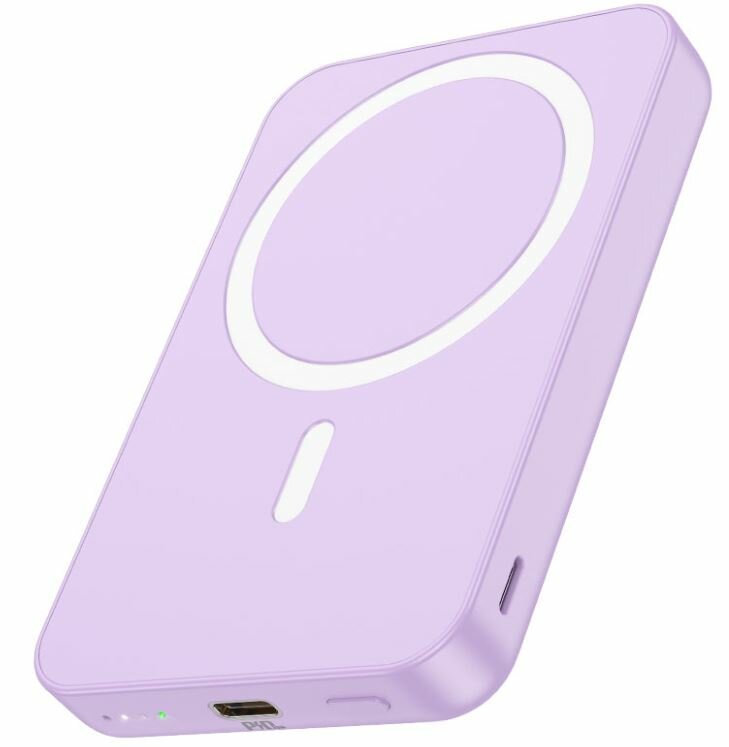 Внешний аккумулятор Power bank 5000mAh PD 20W с беспроводной зарядкой и магнитом для magsafe фиолетовый HOCO J109