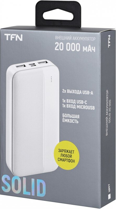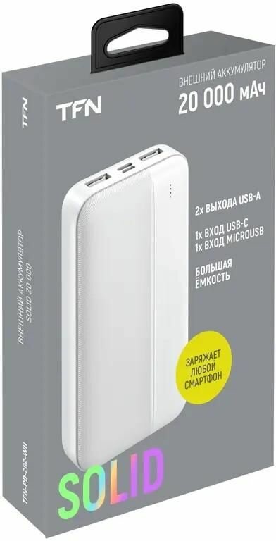 Внешний аккумулятор на 20000 mAh, TFN Solid 20, белый(TFN,TFN-PB-282 -WH)