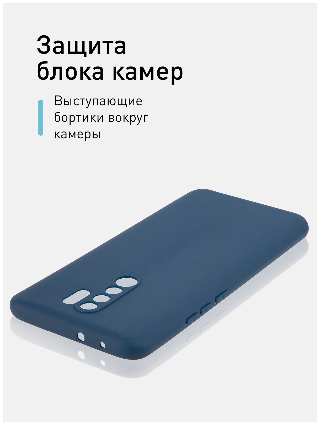 Чехол-накладка для Xiaomi Redmi 9 синий (Сяоми Редми 9) тонкий из силикона, с матовым покрытием, защита вокруг модуля камер ROSCO