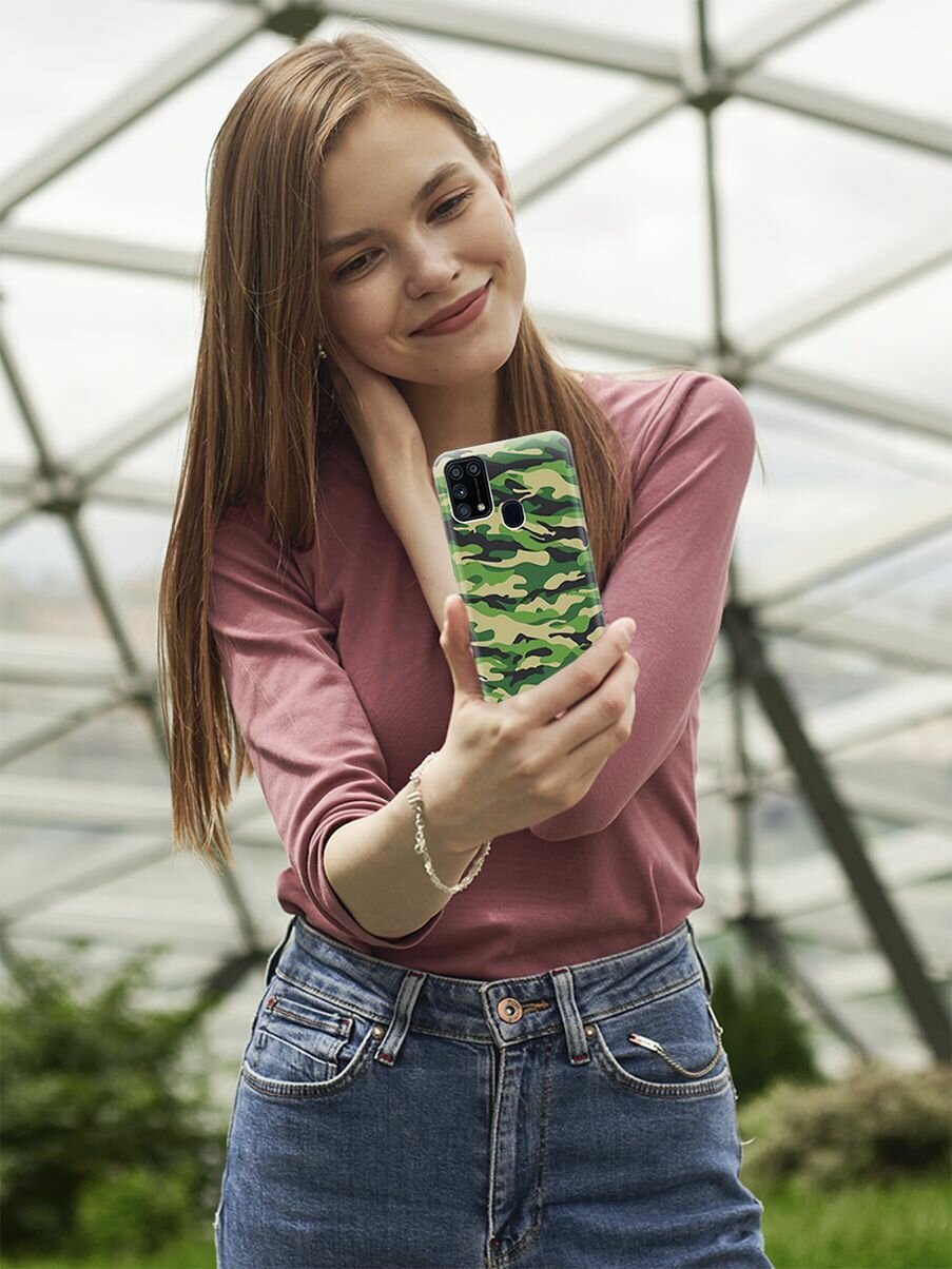 СохранитьУльтратонкий силиконовый чехол-накладка для Samsung Galaxy M31 с принтом "Темно-зеленое хаки" интересное: