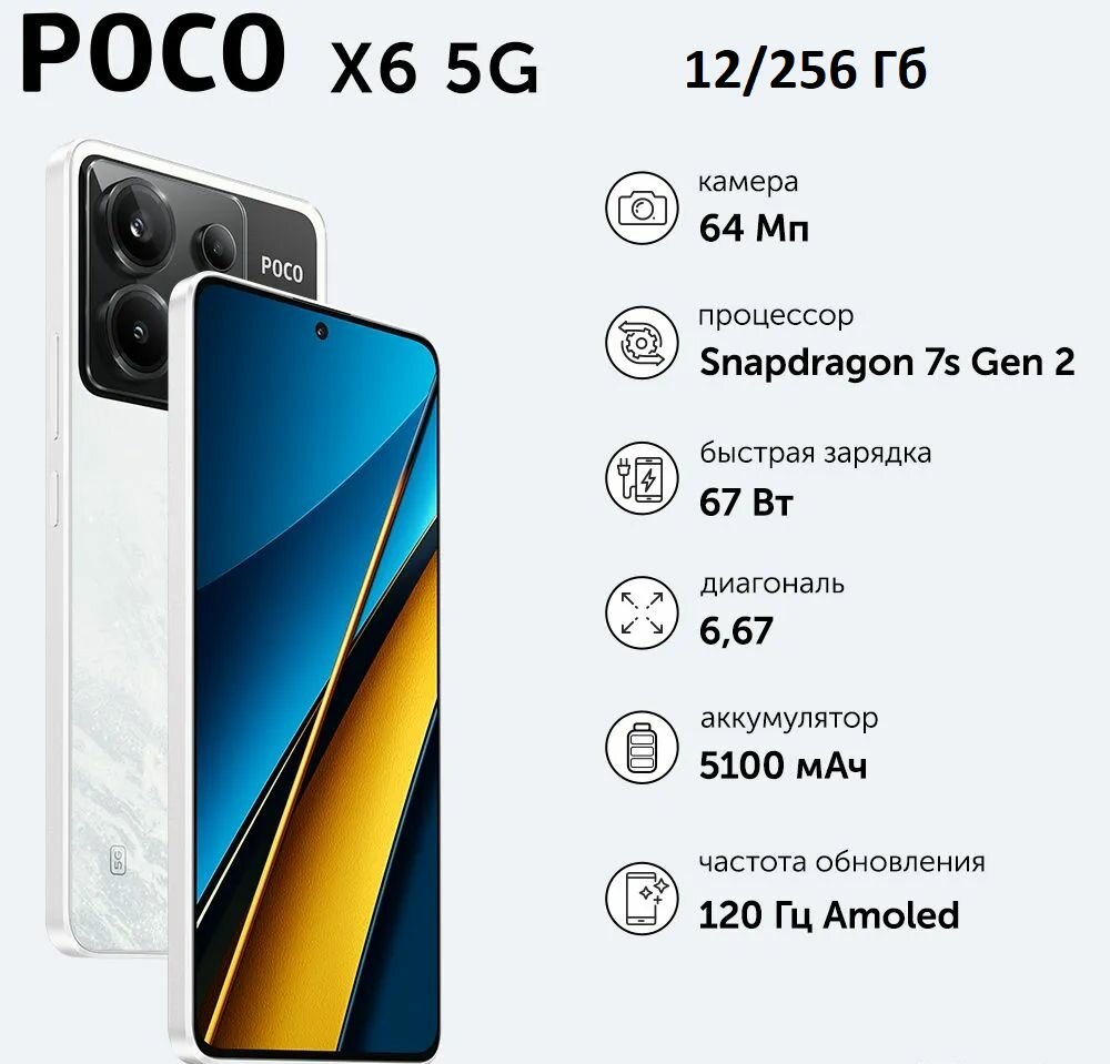 Купить Смартфон Xiaomi POCO X6, 12/256Gb Global, Dual nano SIM, Белый