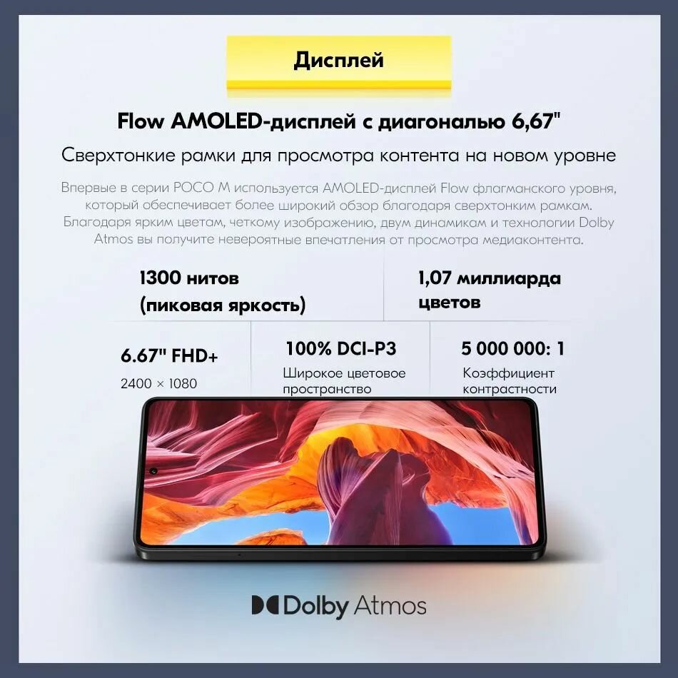 | Особенности | Poco M6 Pro получил современный дизайн: сдержанный / строгий / при этом привлекательный. Его углы немного закруглены / а боковые грани плоские. Клавиши практически не возвышаются над ними. |