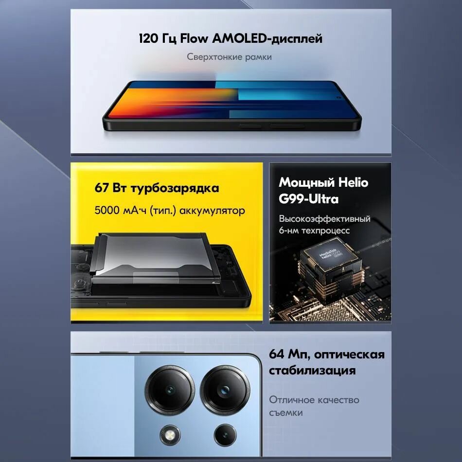 Глобальная версия Helio G99 Ultra 120Hz Flow AMOLED 64MP Triple Camera с OIS 67W turbo charging, Official Standard, Poco, M6 Pro, Смартфон, Голубой, 12ГБ, 512ГБ, global, новый, 01.01.2024