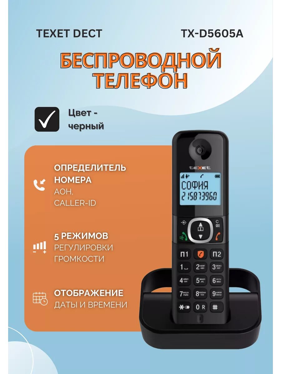 Телефон беспроводной Texet Tx-d5605a черный Tx-d5605a черный .