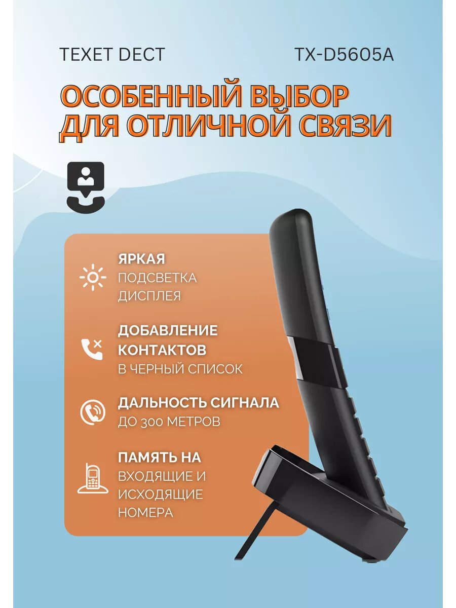 Телефон DECT teXet TX-D5605A Black интересное: