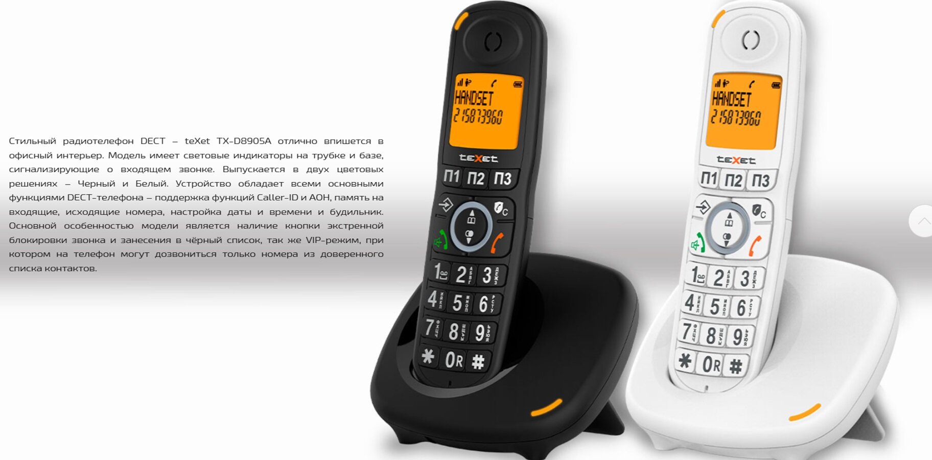 Радиотелефон Dect Texet TX-D8905A White (Белый) интересное: