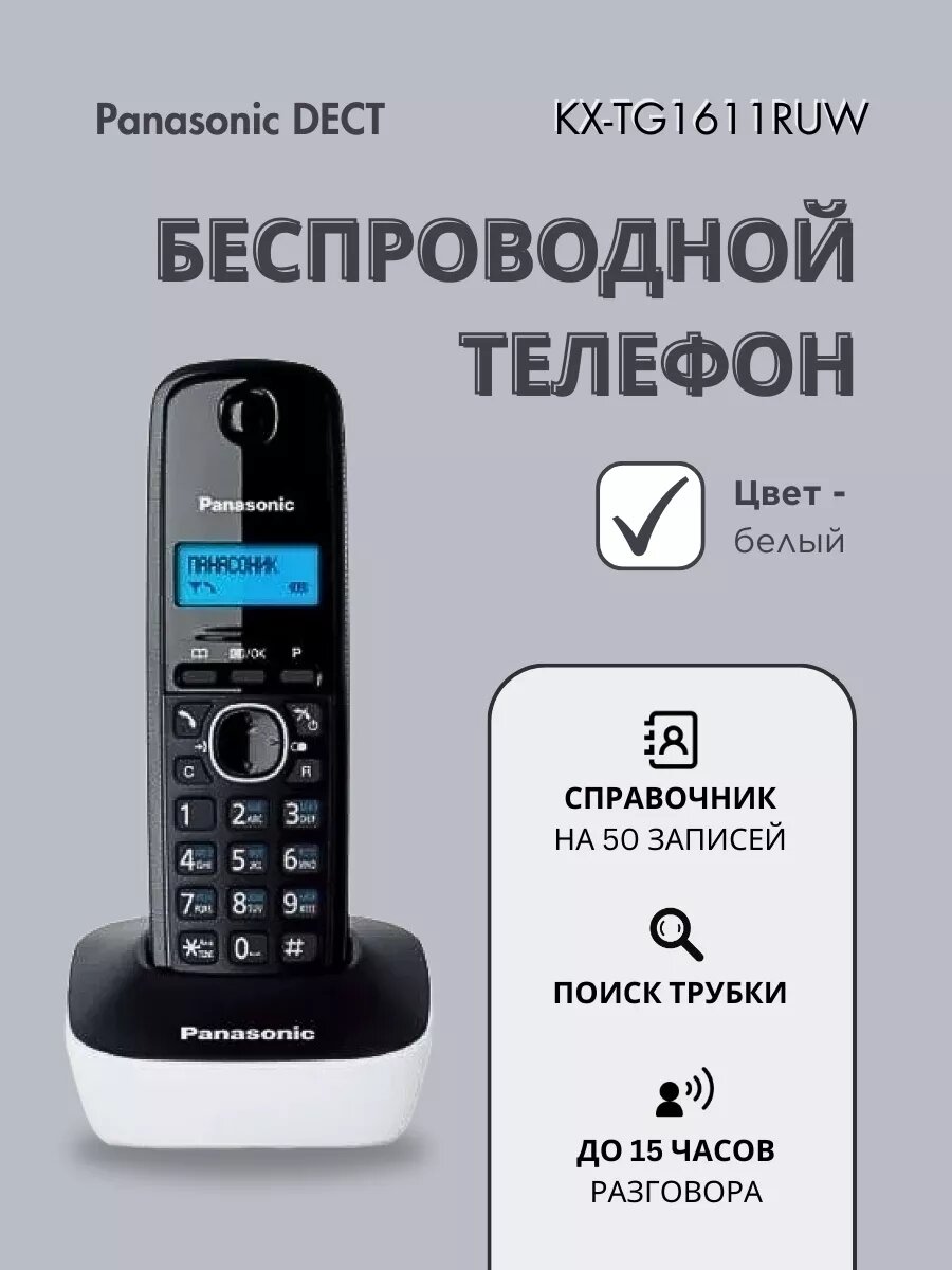 Беспроводной телефон DECT белый KX-TG1611 RUW интересное: