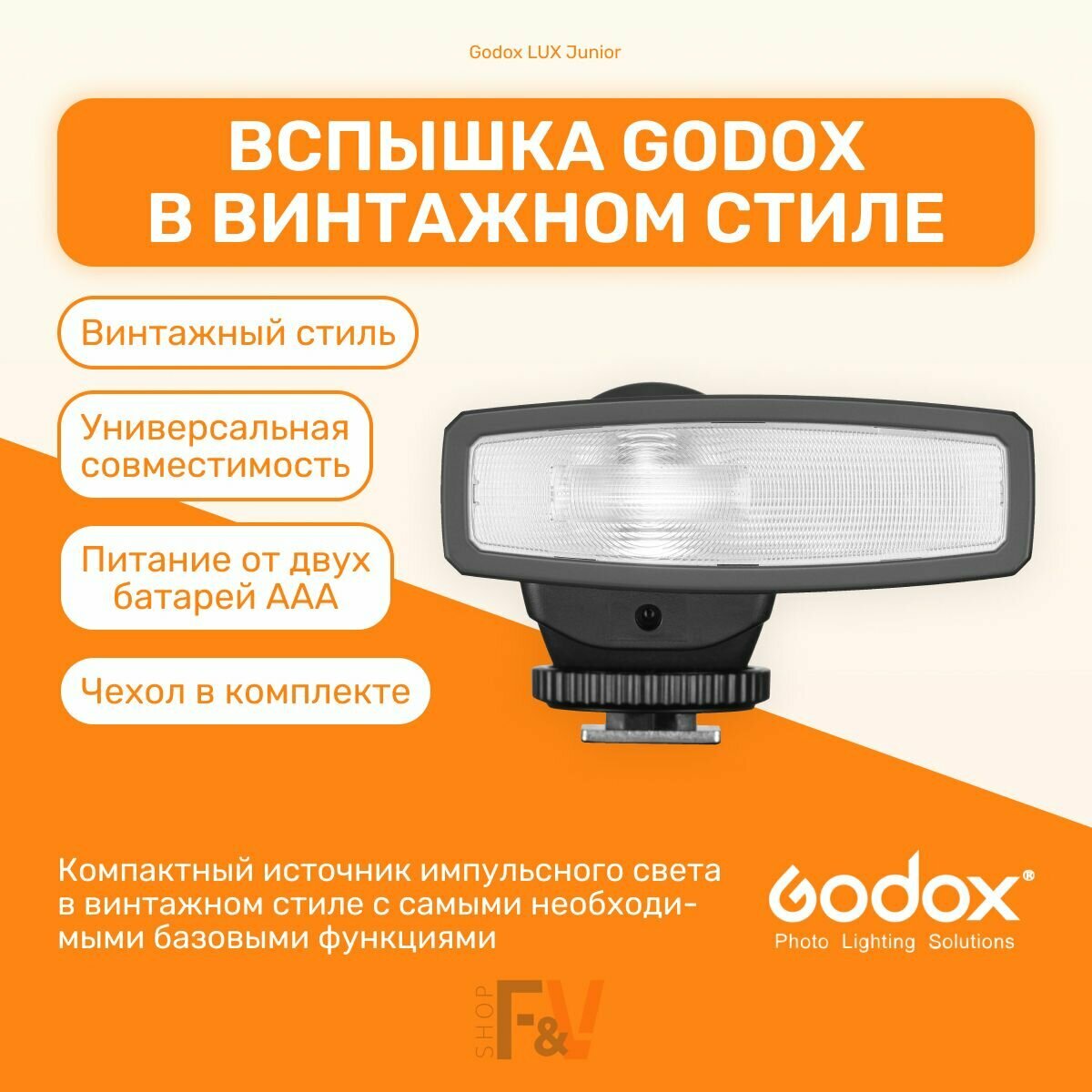 Вспышка накамерная Godox "LUX Junior", для всех камер, башмак, ручная регулировка, 130 г