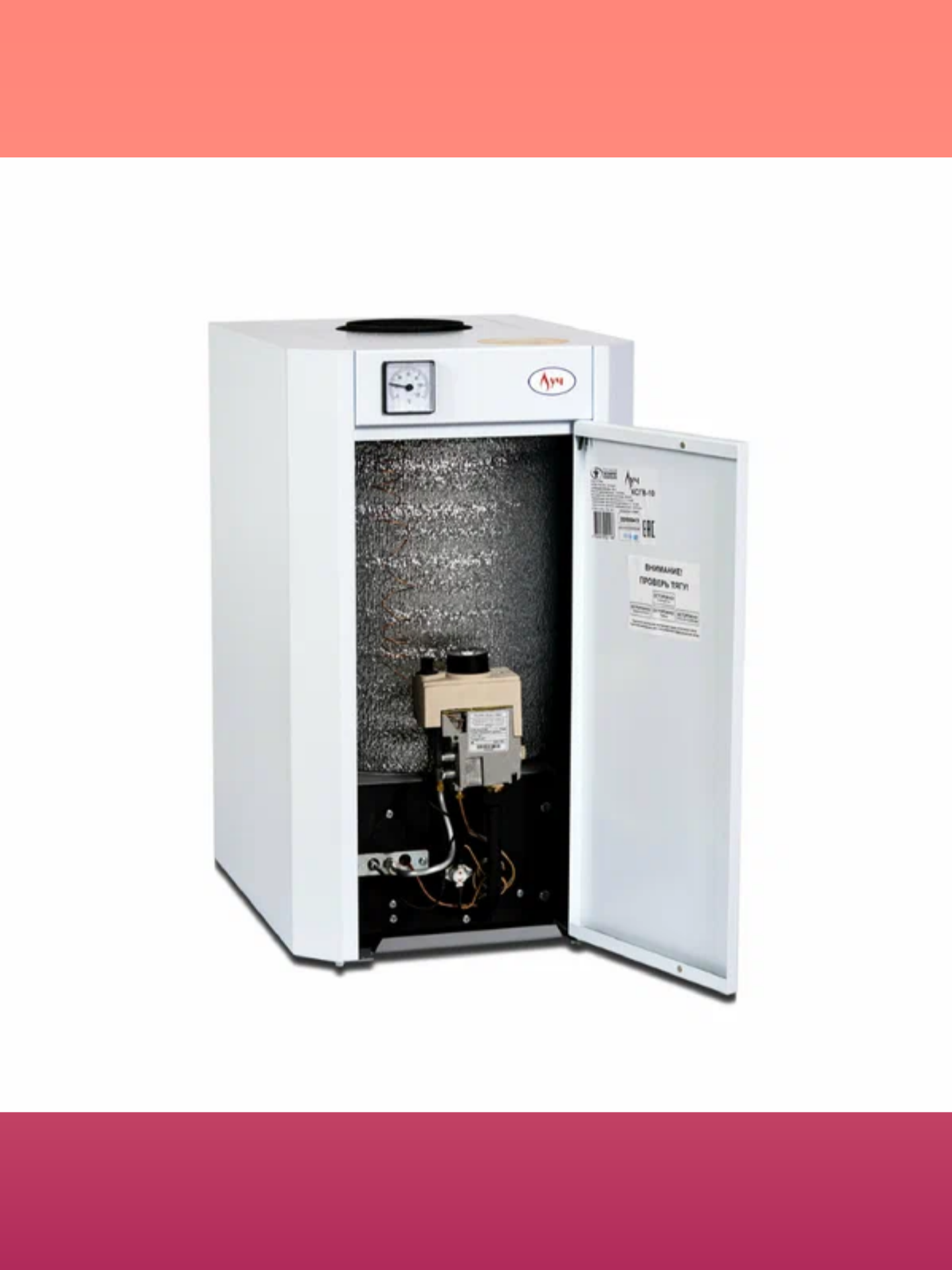 Напольный газовый котел ЛУЧ КСГ-8 на 80 М2, с открытой камерой сгорания