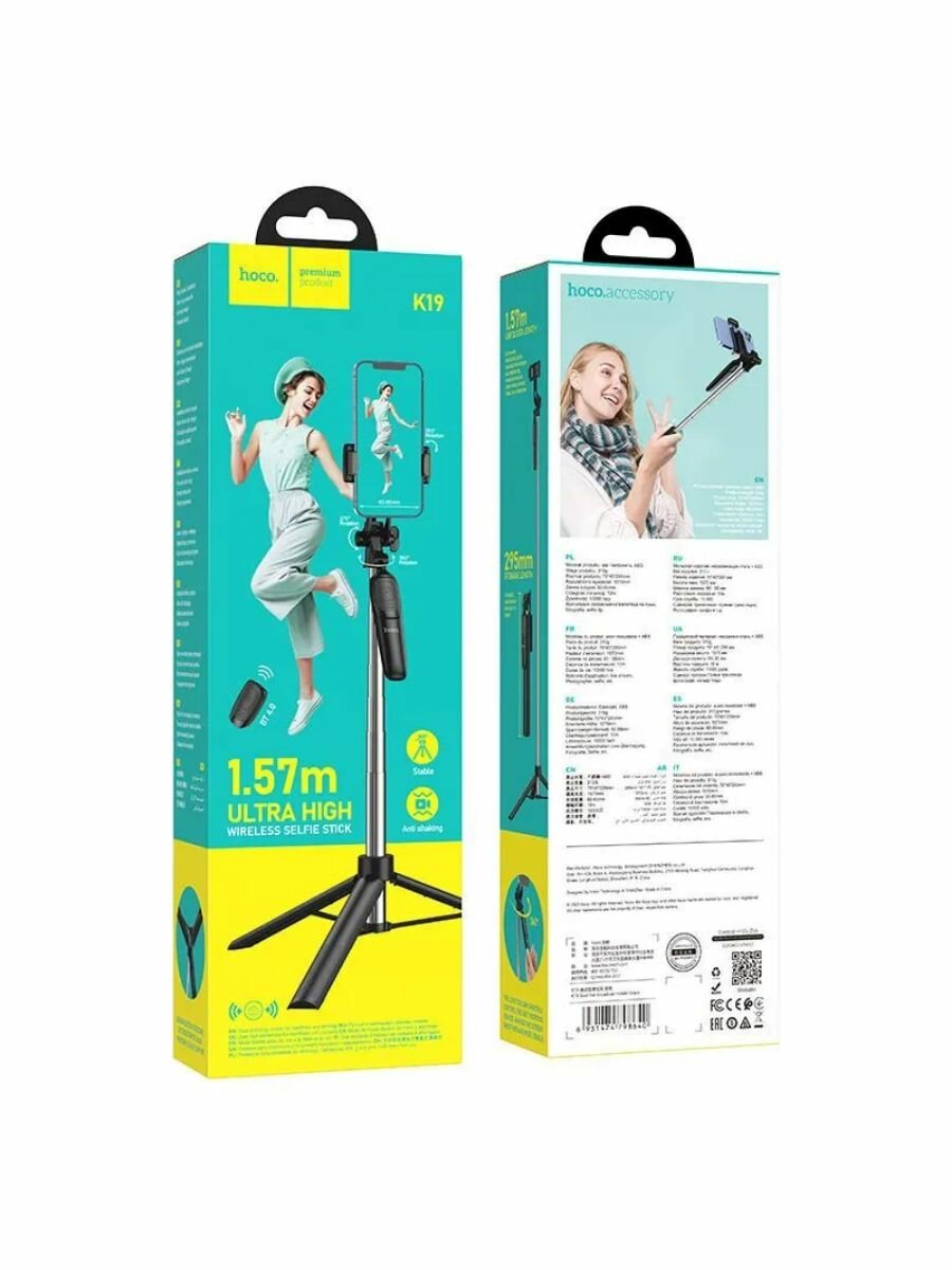 Селфи K19, Hoco, беспроводной трипод с пультом, черный