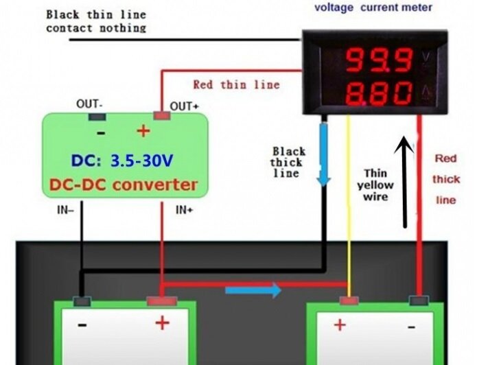 Вольтамперметр (0-100В/0-9.99А) (красный + синий цвет, 3 разряда) интересное: