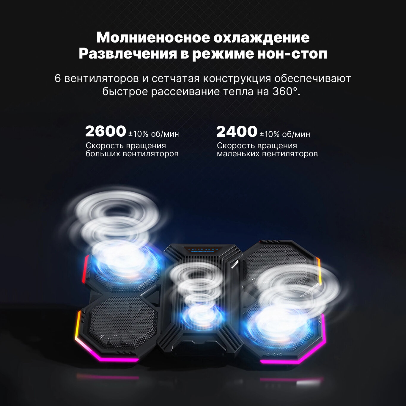 подставка для ноутбука Maibenben LS03 6 вентилятора Подходит для 12"-21" 6 уровней регулировки высоты 2 USB