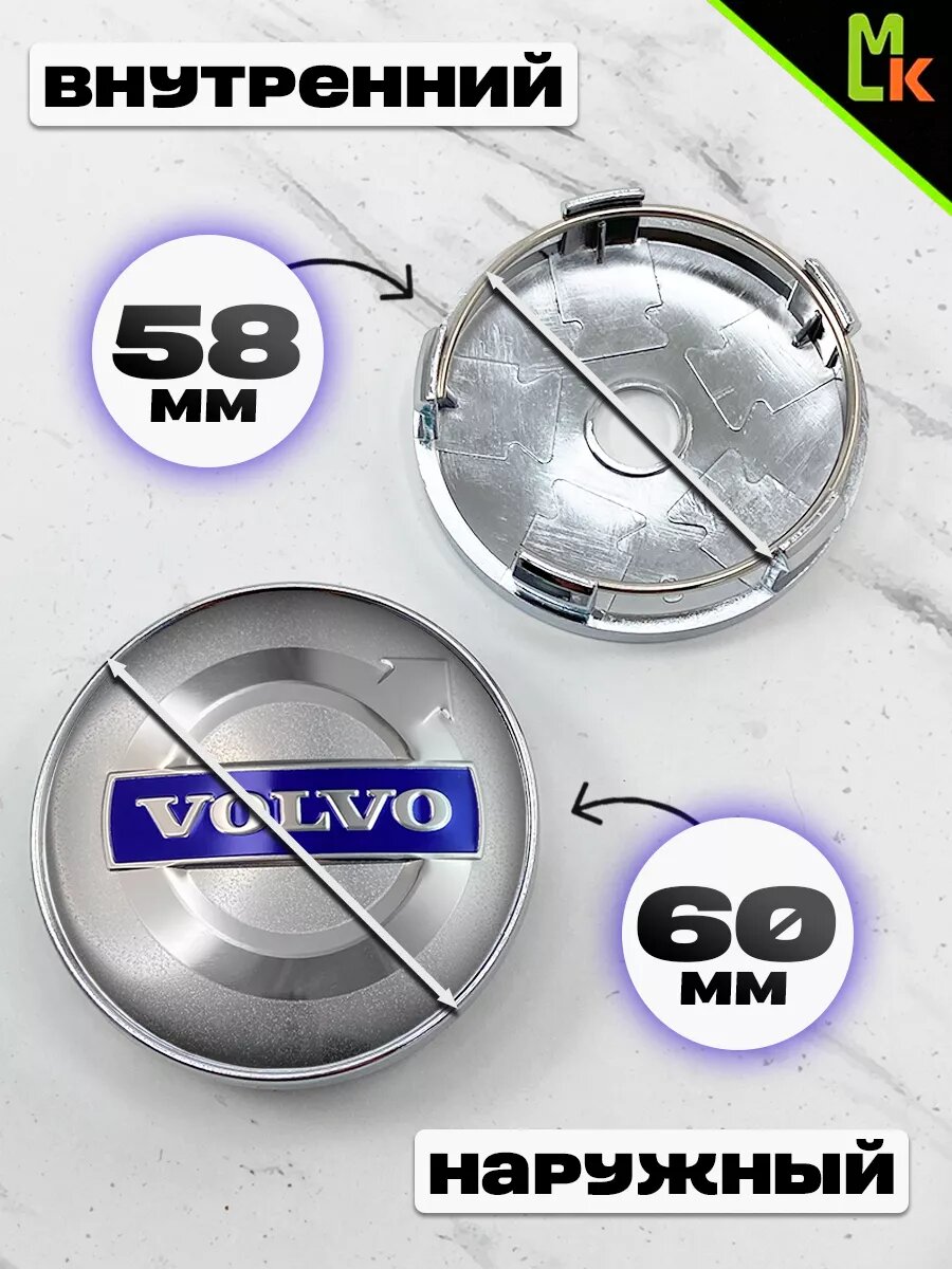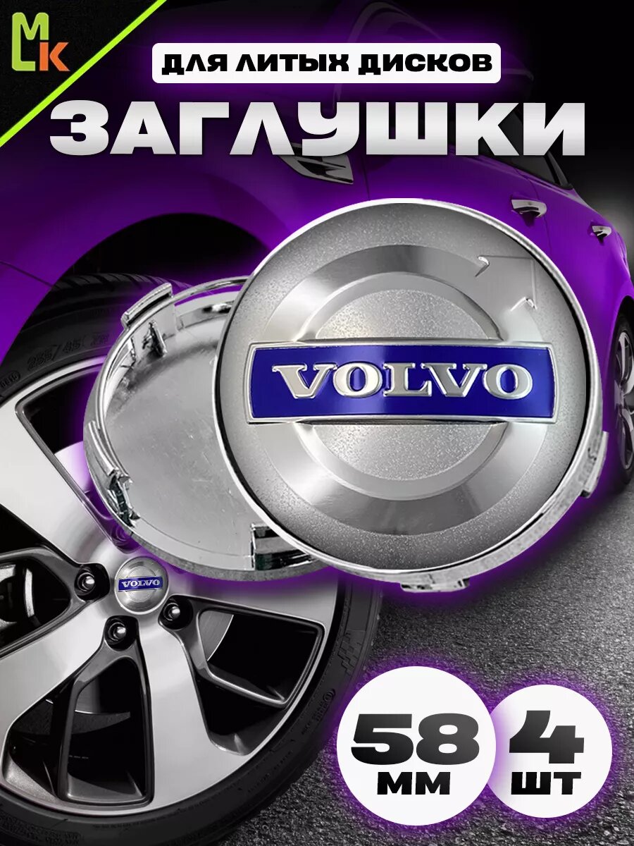 Колпачки на ступицу колеса 4 шт, автоколпак, заглушка диска, колпачки в автомобильные диски, с эмблемой "Вольво" посадочный диаметр 58 мм