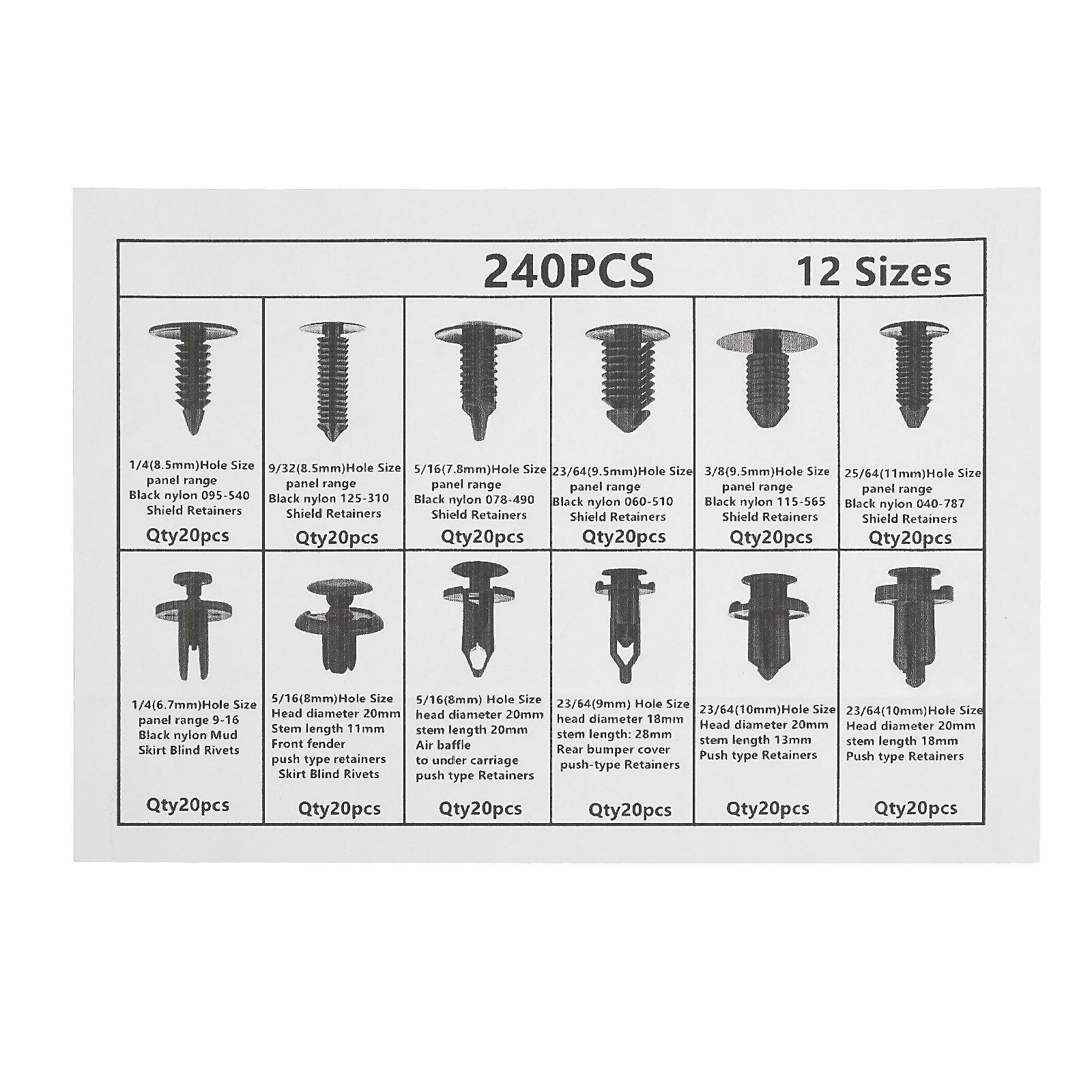 Купить Клипсы и пистоны крепежные, 12 видов, набор 240 шт 5377980 .