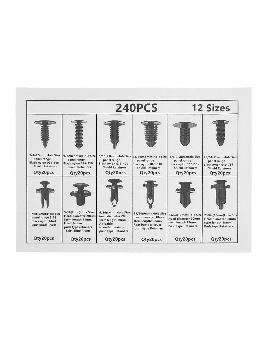 Клипсы и пистоны крепежные, 12 видов, набор 240 шт 5377980 . интересное: