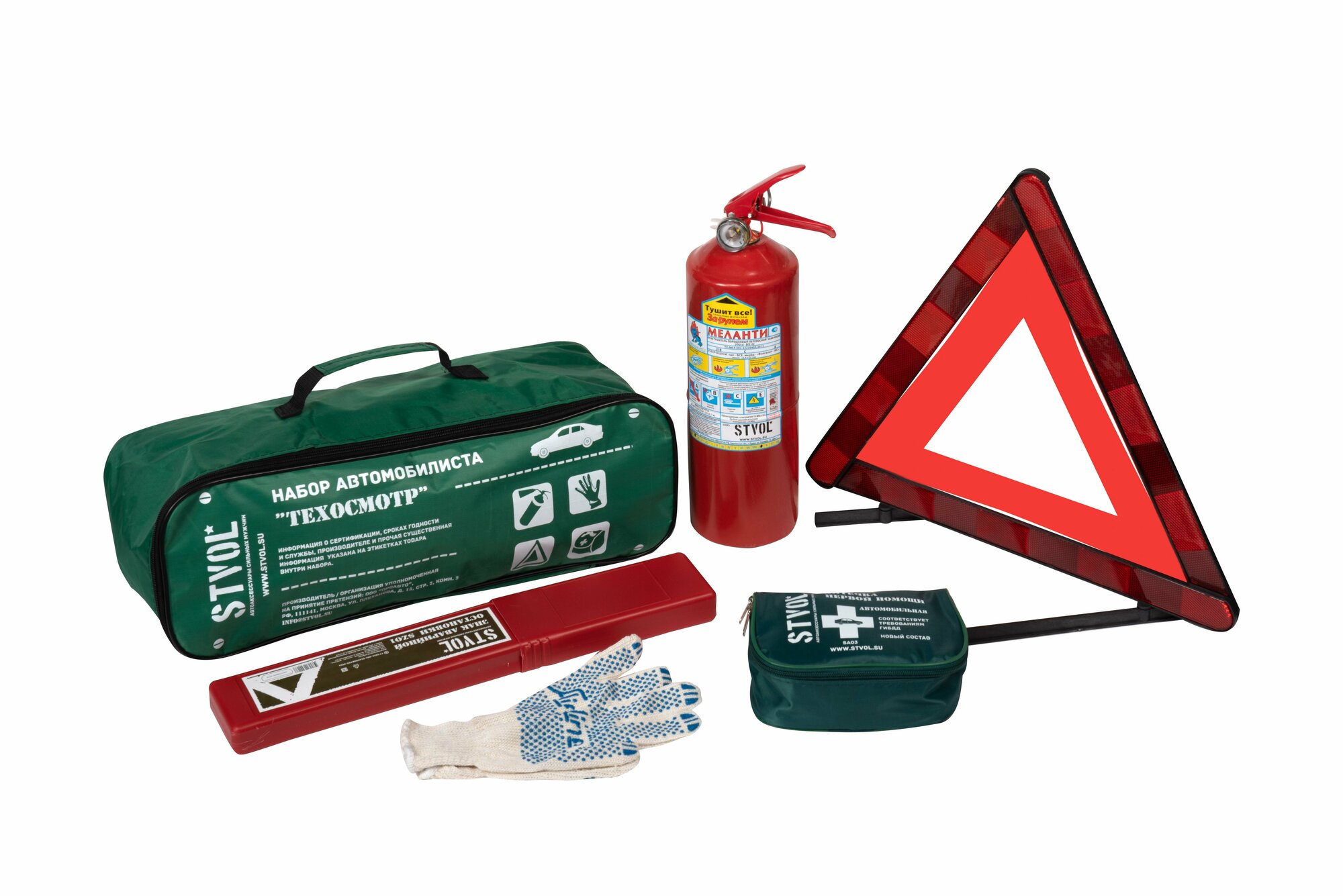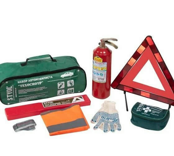 STVOL SNA02 Набор автомобилиста "Техосмотр", ГОСТ (Знак+Аптечка+Огнетушитель ОП2+Перчатки)