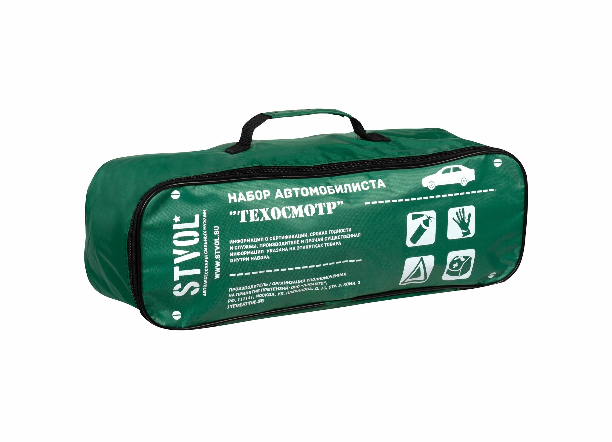 STVOL SNA02 Набор автомобилиста "Техосмотр", ГОСТ (Знак+Аптечка+Огнетушитель ОП2+Перчатки), зел.