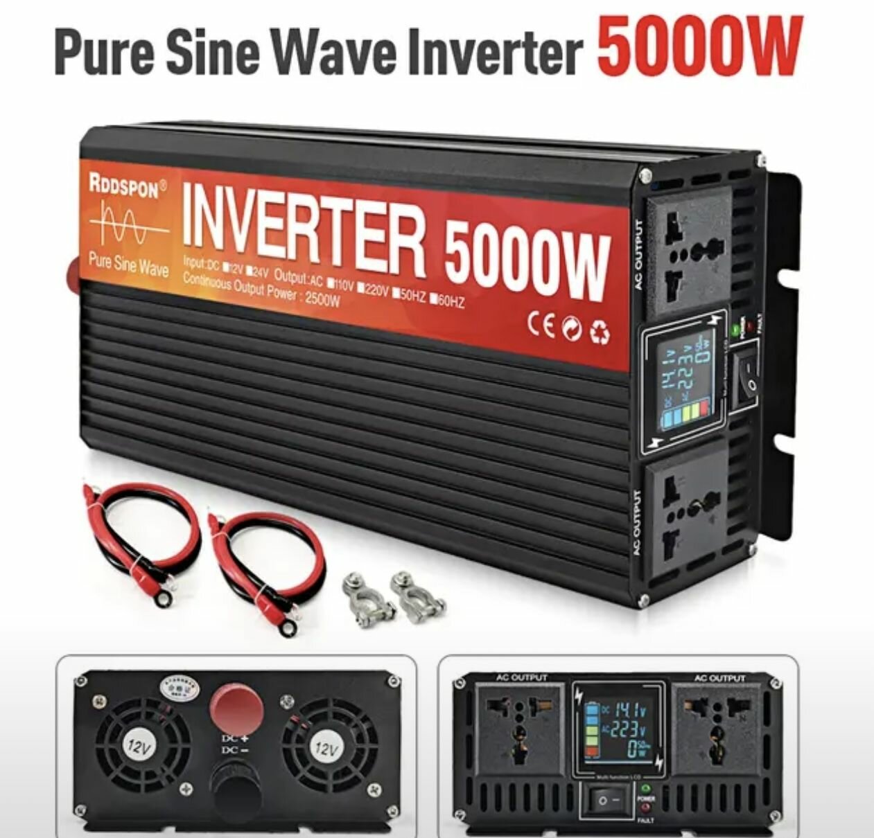 Ниже Вы можете прочитать отзывы на Автомобильный инвертор 5000 Вт 12В-220В чистый синус, ознакомится с подробными характеристиками, посмотреть интересные обзоры и фотографии на Автомобильный инвертор 5000 Вт 12В-220В чистый синус.