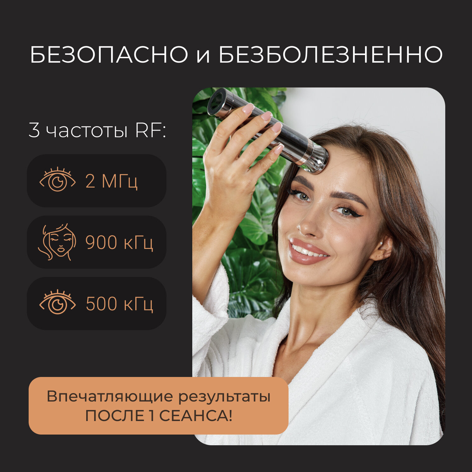 | Принцип работы | RF-лифтинг / ионизация / миостимуляция / светотерапия |