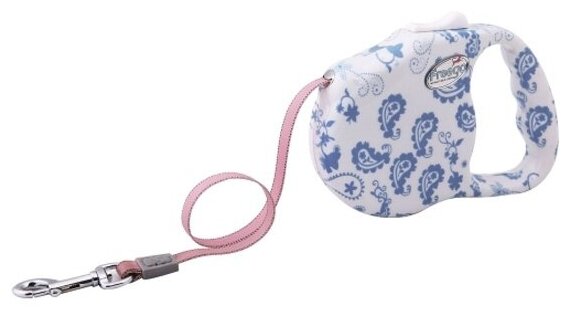 Поводок-рулетка Freego "Пейслийский узор" лента, размер M, 3м*23кг, белая с синим