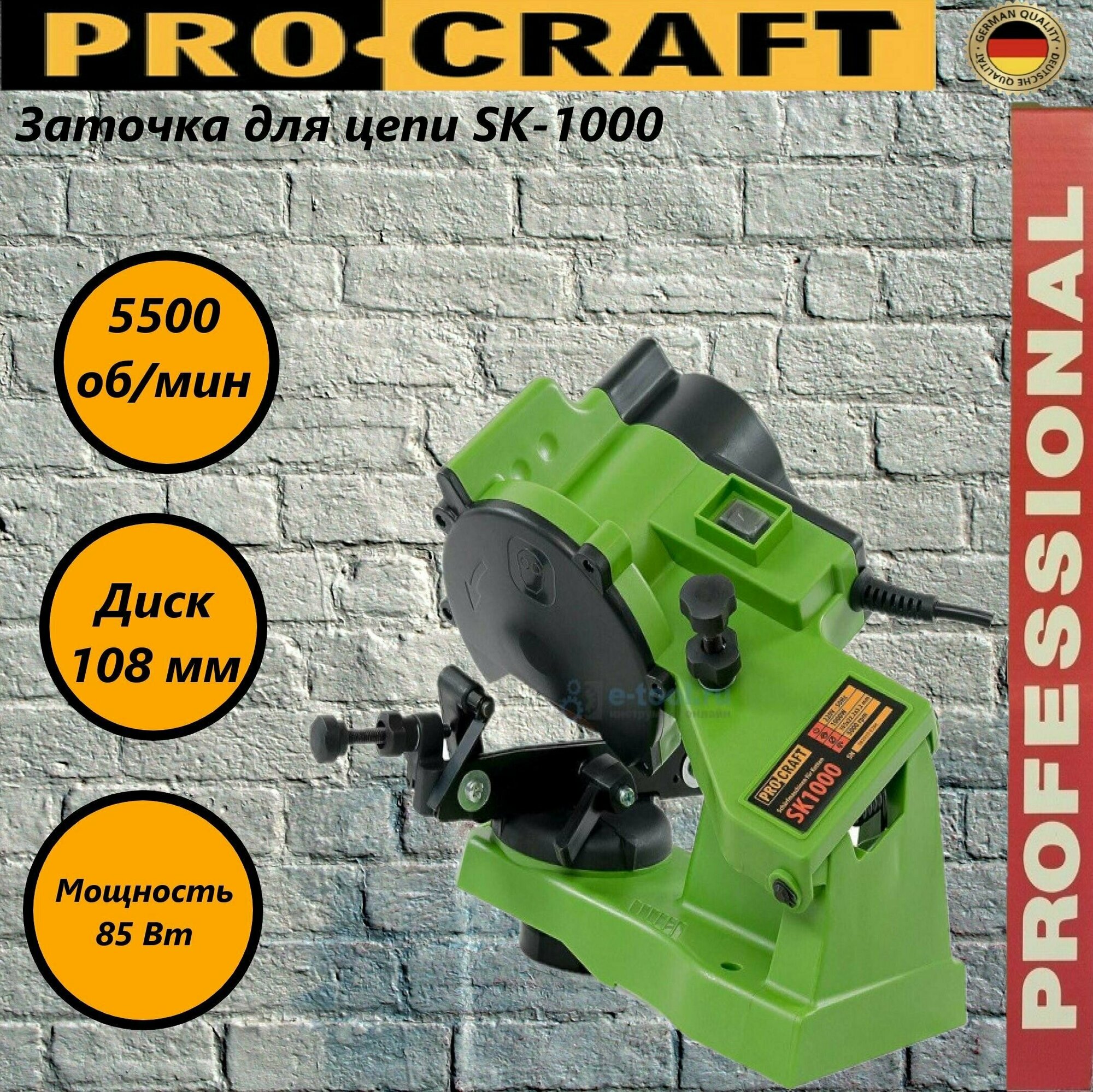 Станок для заточки цепей Procraft SK1000 85Вт, 5500 об/мин, заточной круг 108/3,2/23 мм интересное: