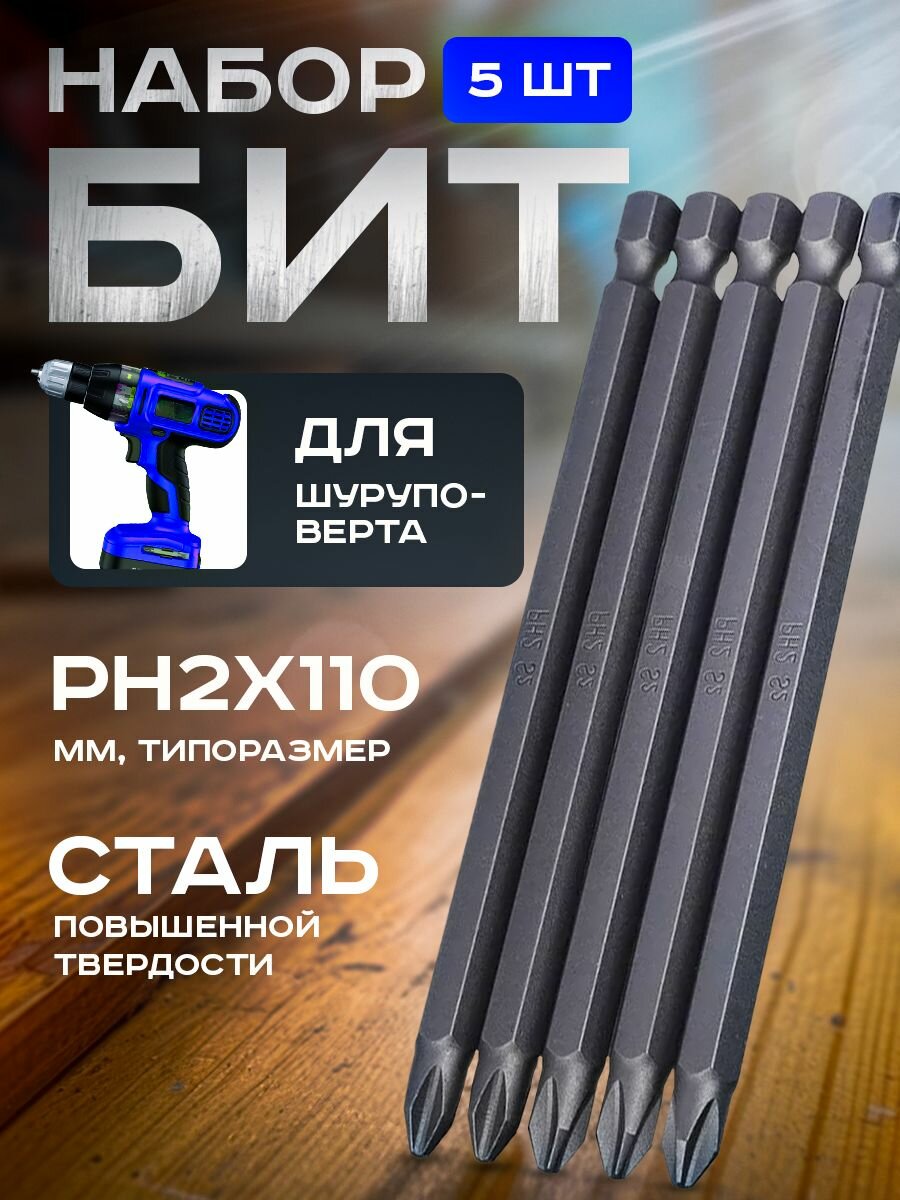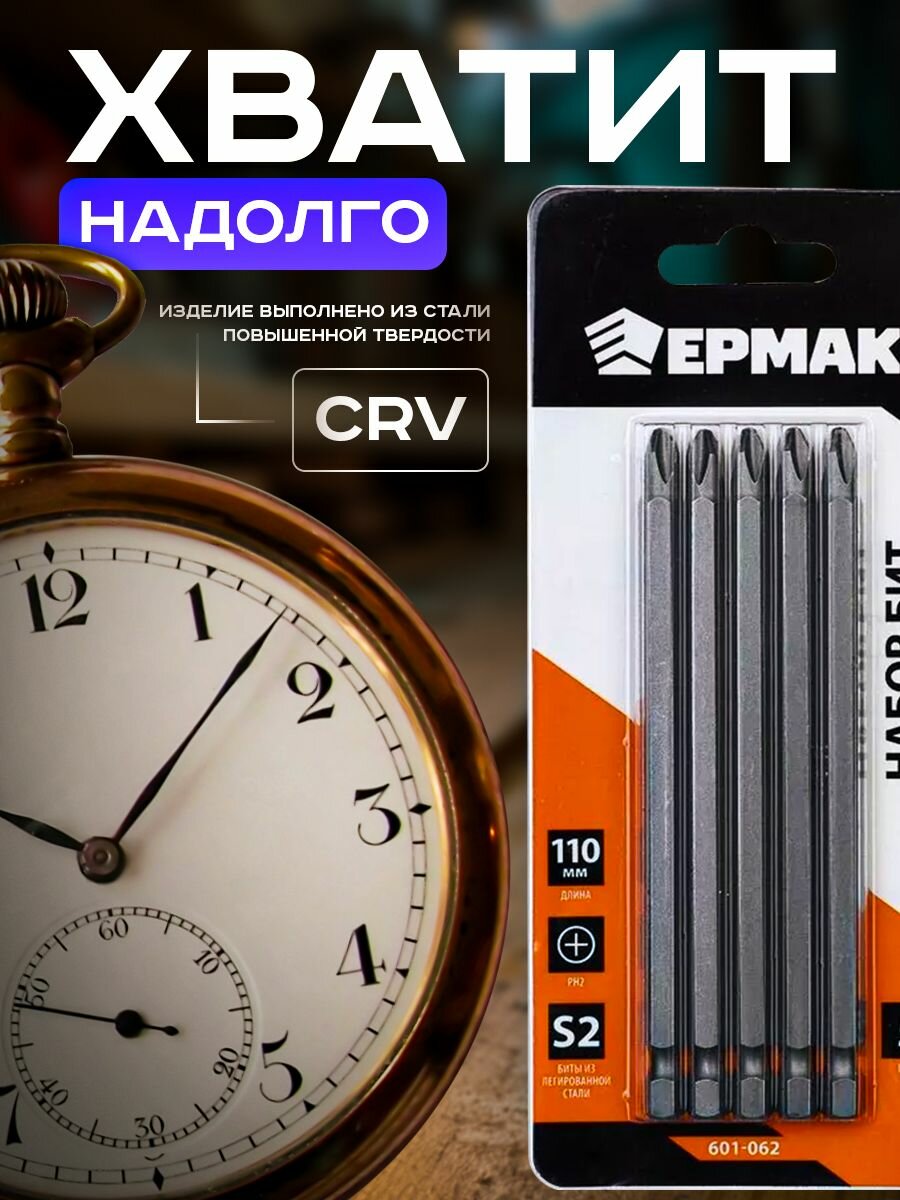 Биты для шуруповерта ермак PH2х110 мм, удлиненные, на блистере 5 шт. интересное:
