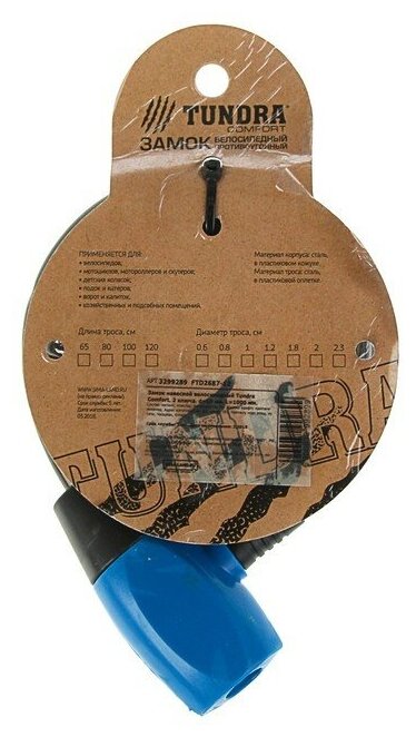 Замок велосипедный Tundra навесной, 10х1000 мм, перфорированный ключ