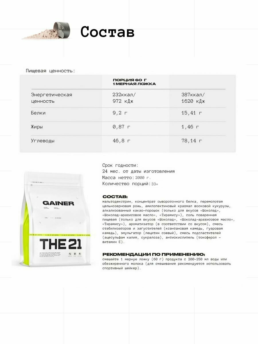 СохранитьTHE 21 Gainer Гейнер Ванильное мороженое/Gainer/Спортивное питание для набора массы медленными быстрыми углеводами,2,4кг интересное: