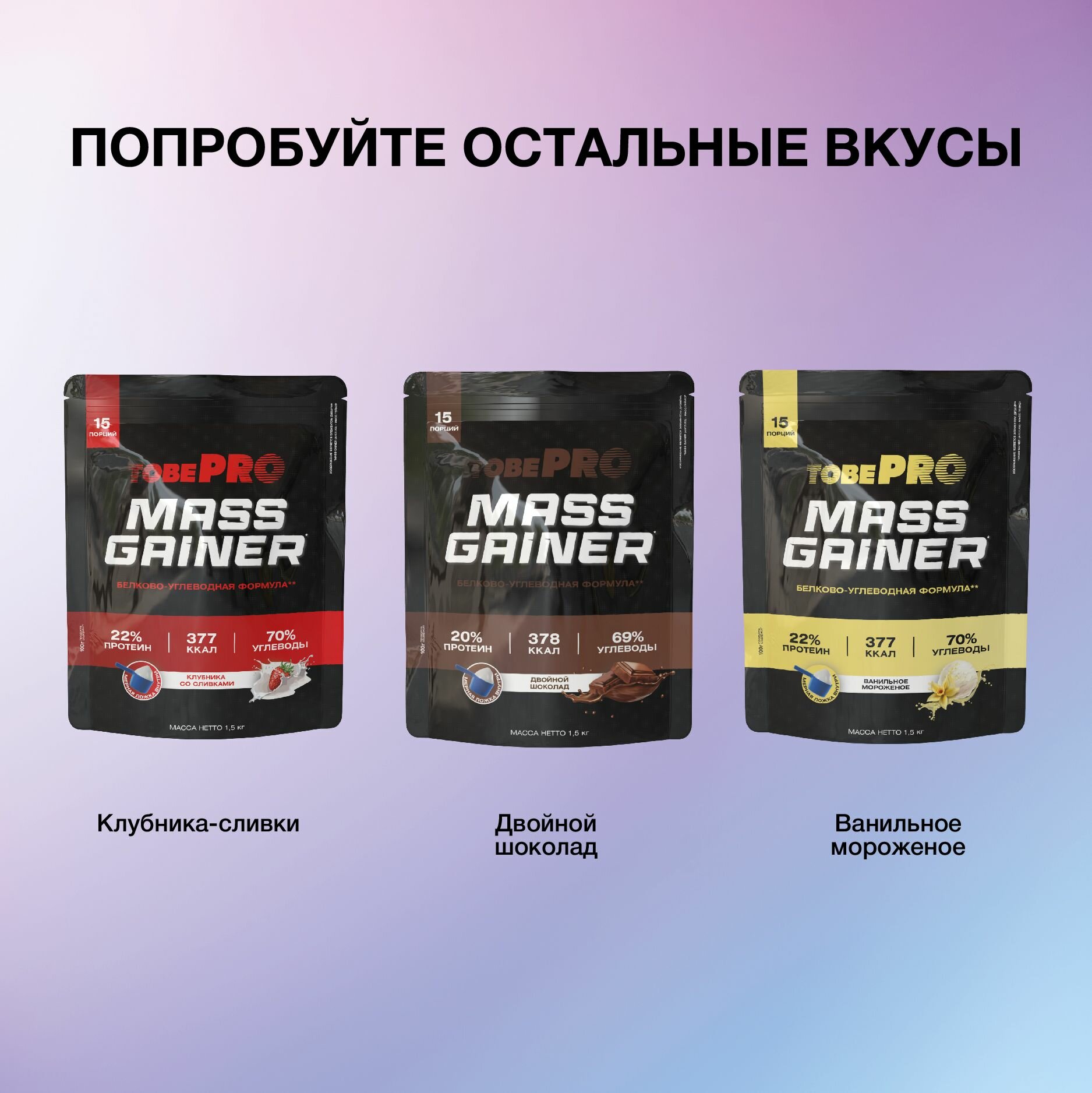 Гейнер TobePRO MASS GAINER для набора массы Ванильное мороженое, 1,5 кг/15 порций