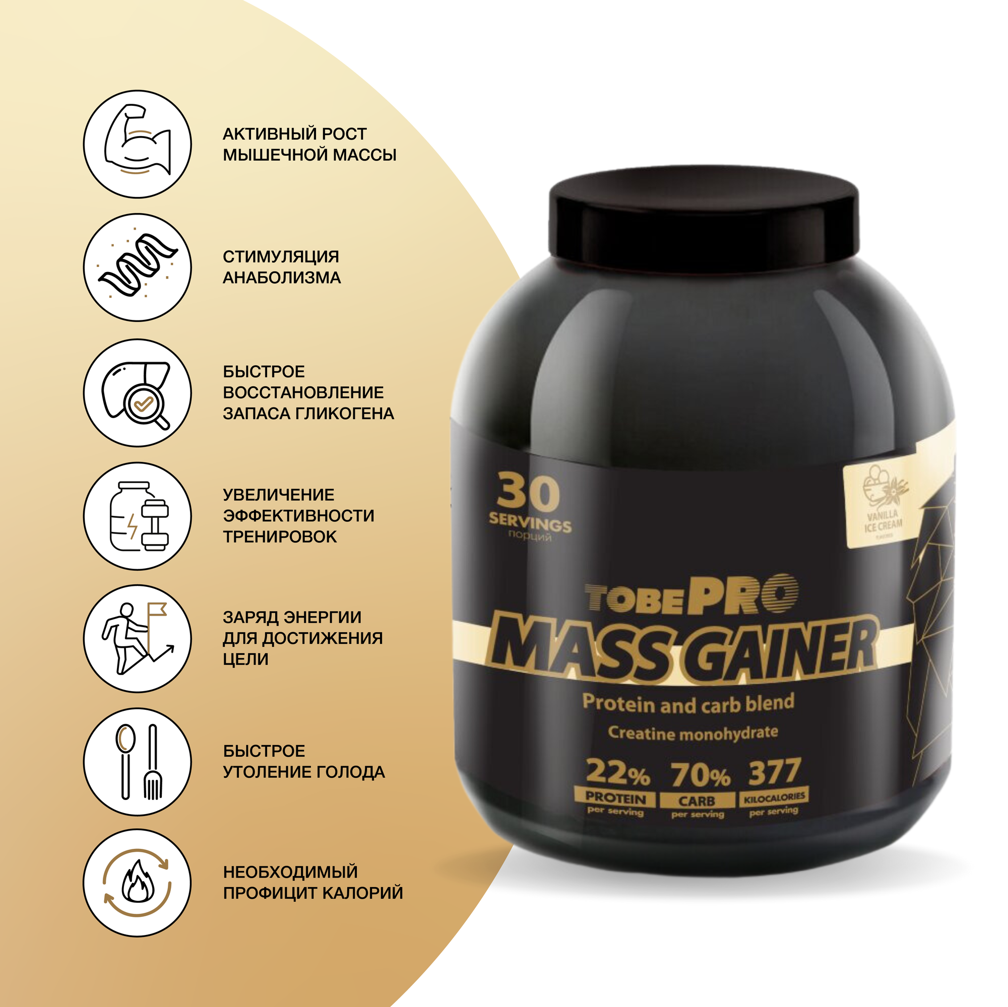 Гейнер TobePRO MASS GAINER для набора массы Ванильное мороженое, 3кг/30 порций