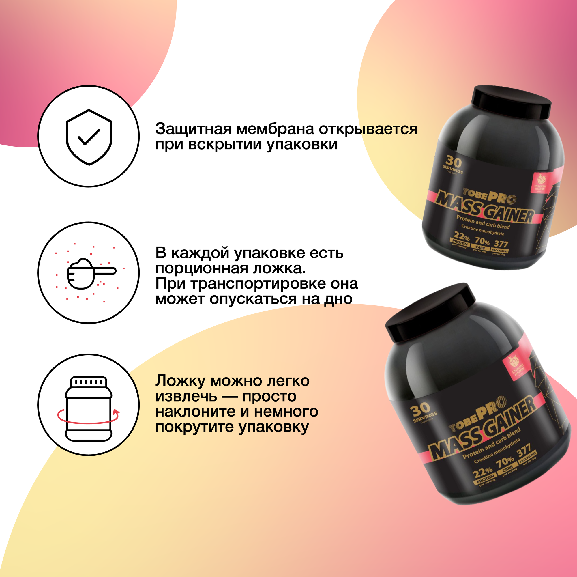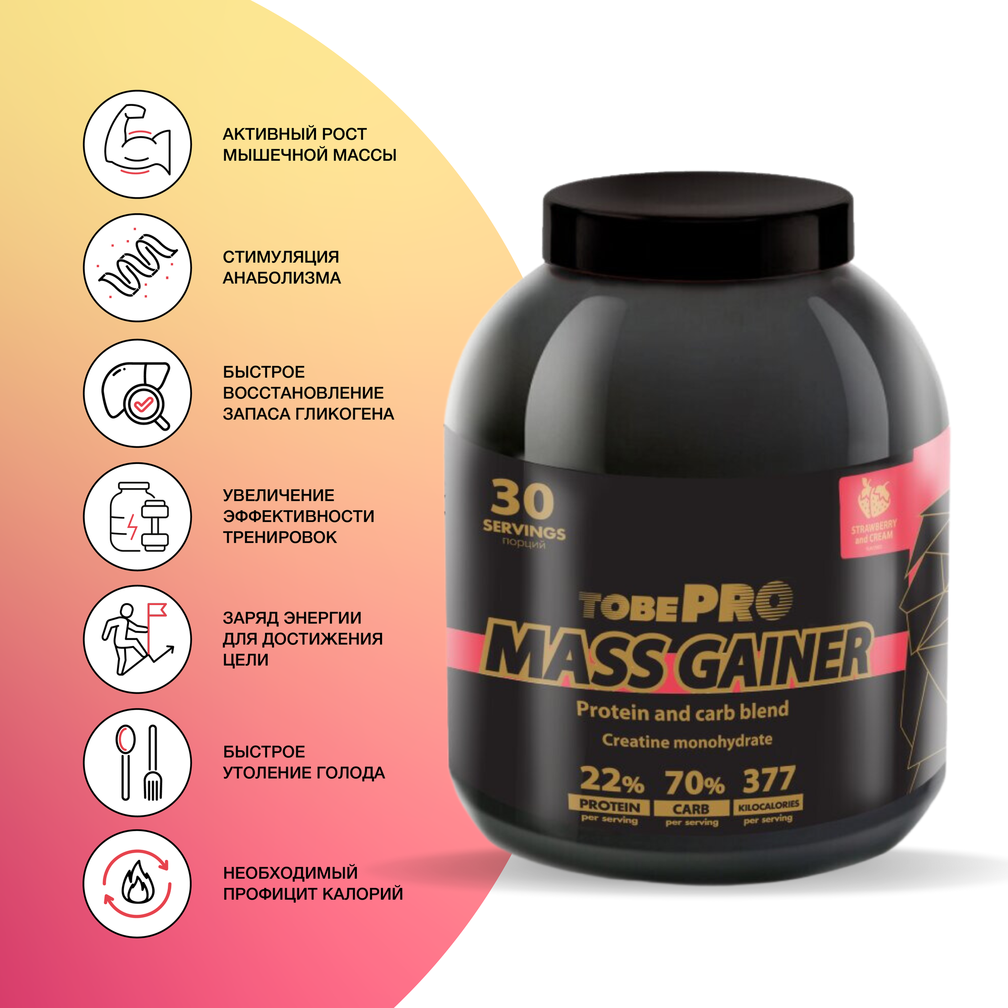 Гейнер TobePRO MASS GAINER для набора массы Клубника со сливками, 3 кг/30 порций