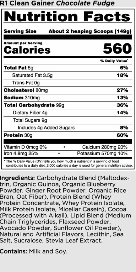 Гейнер Rule One (R1) Clean Gainer, 4320-4470 г, Вкус Chocolate Fudge / Шоколадная Помадка, Вес 4470 г