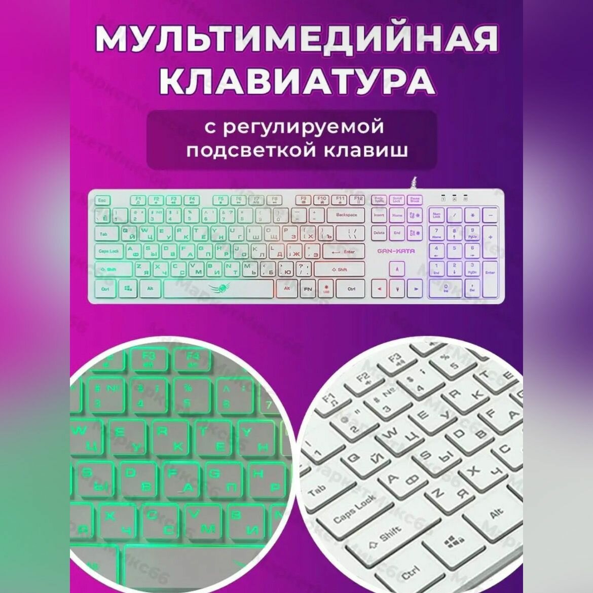 Клавиатура игровая Dialog KGK-17U white Gan-Kata104кл. радужная подсветка - белая 1.6м