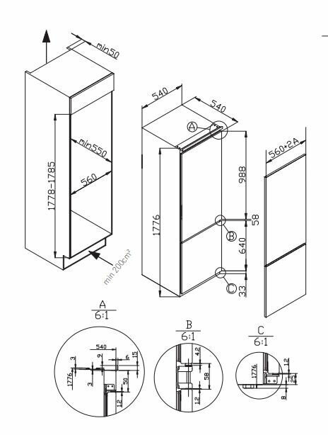Встраиваемый холодильник комби Candy CBL3518EVWRU