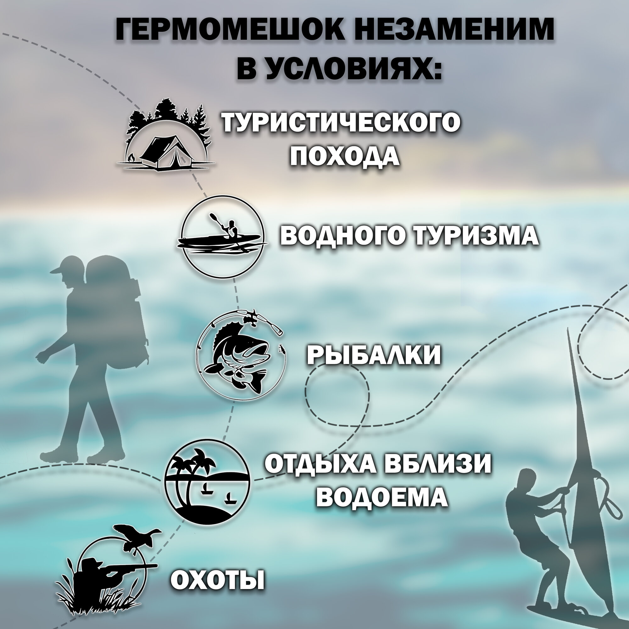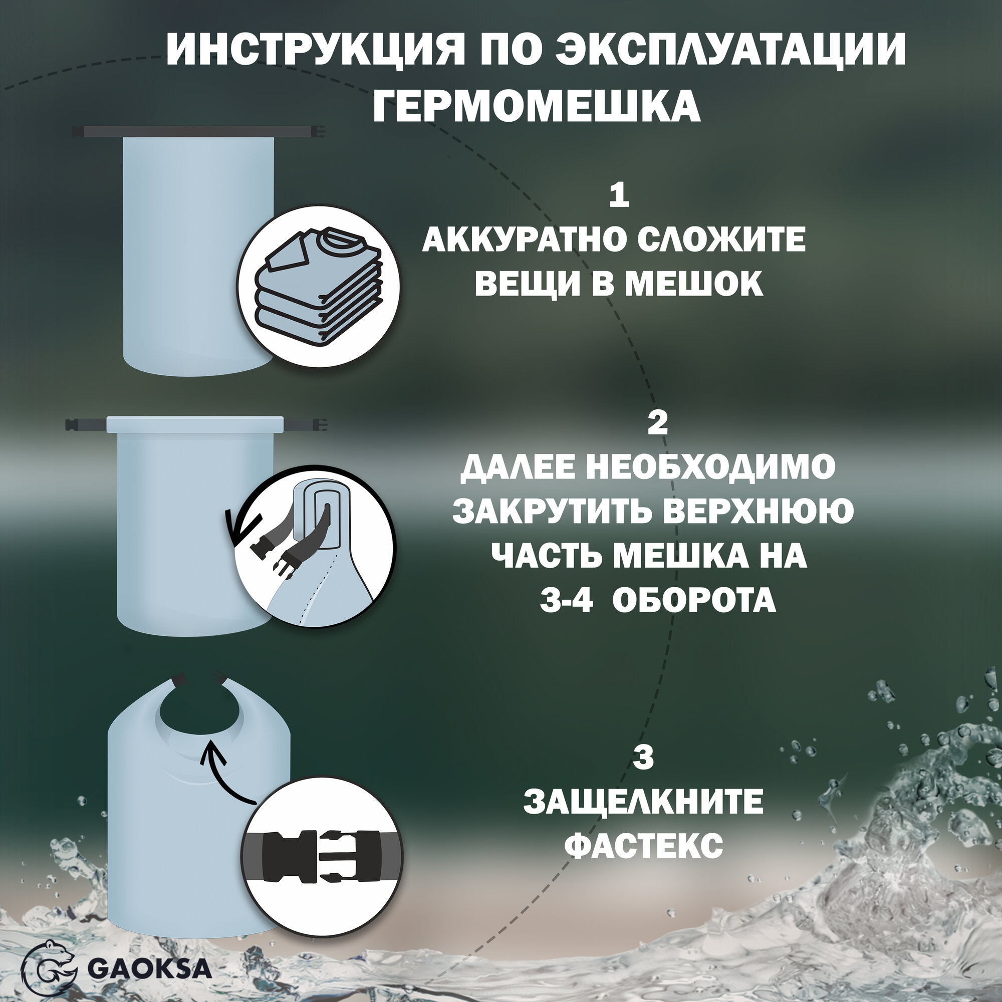 Водонепроницаемый туристический гермомешок пвх GAOKSA, прочная гермосумка 50 л, черный драйбег, охота и рыбалка