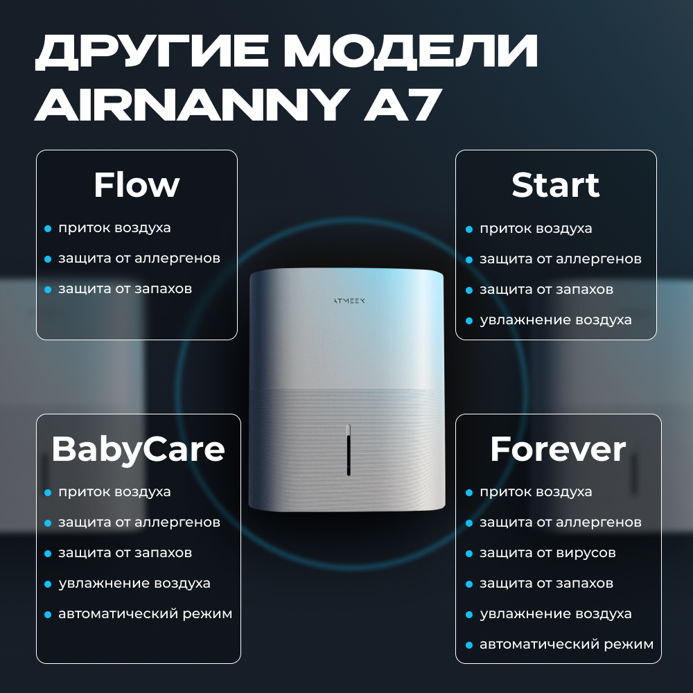 Комплекс приточный ATMEEX AIRNANNY A7 BabyCare для очистки воздуха (Очистка + Увлажнение + Подогрев + Датчик CO2) встроенный увлажнитель с УФ-лампой