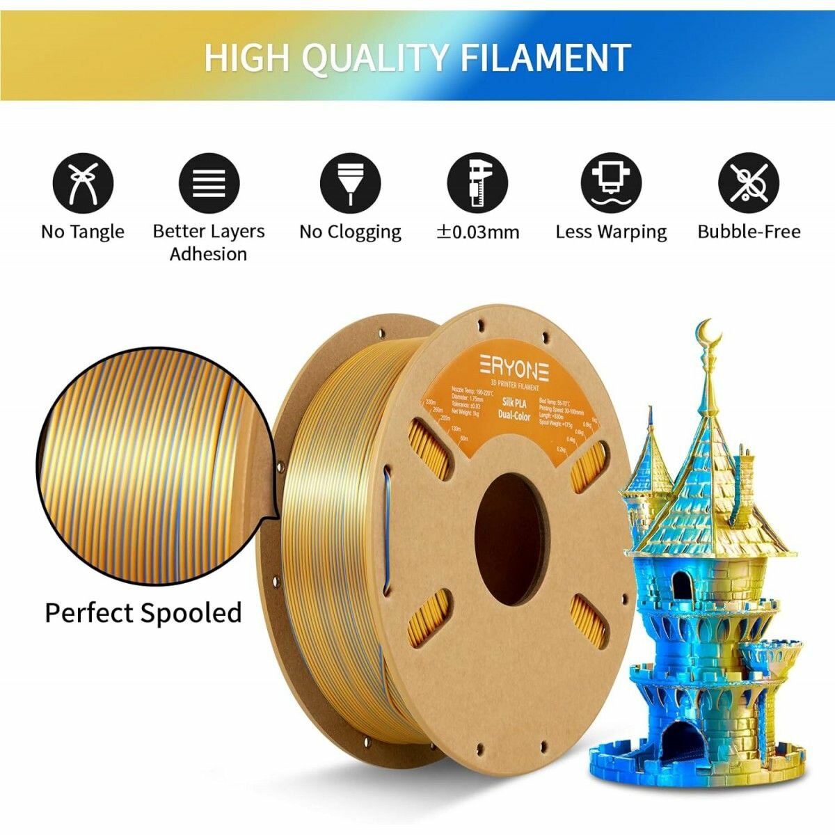 PLA пластик для 3D принтера Silk Dual-Color 1,75 мм 1 кг (Eryone) Золотой - Серебряный