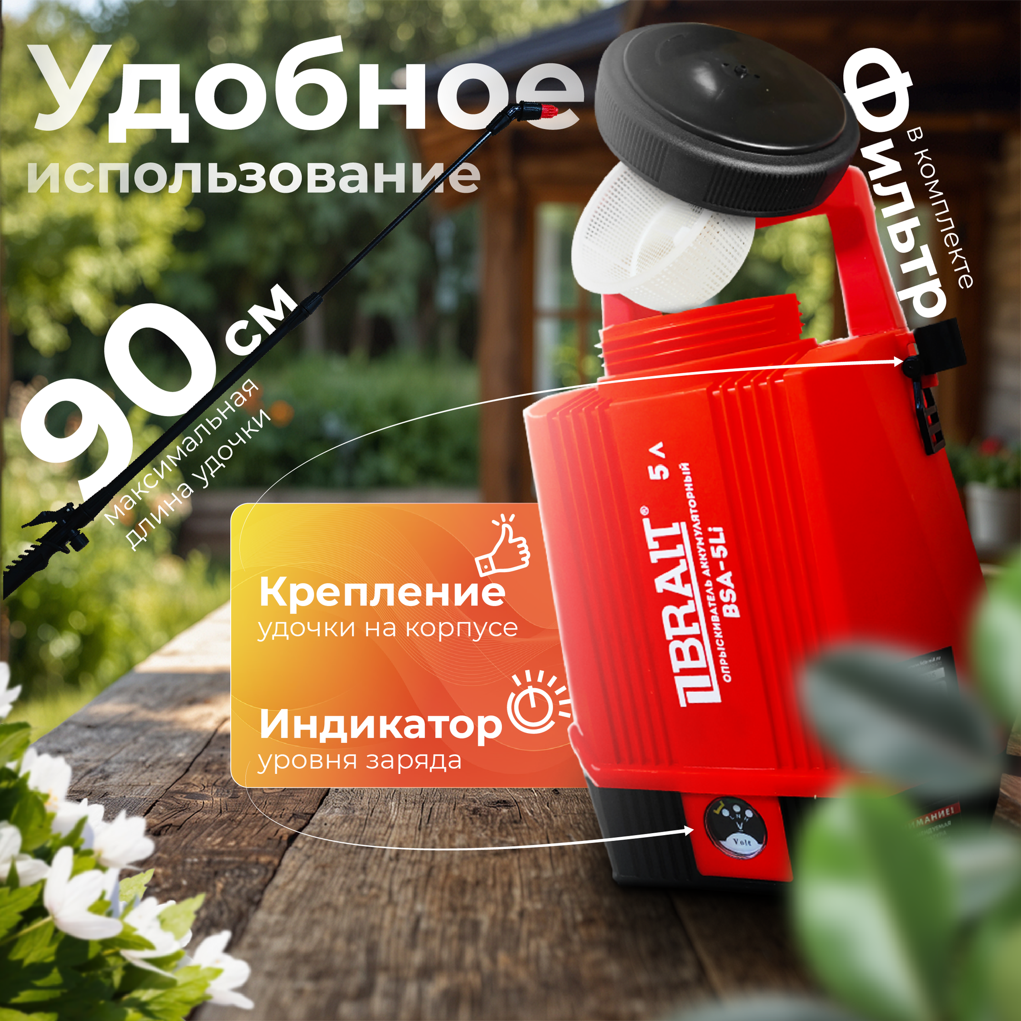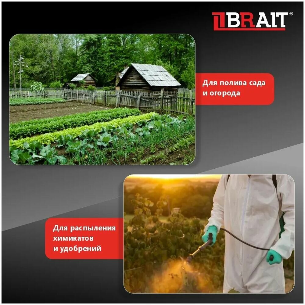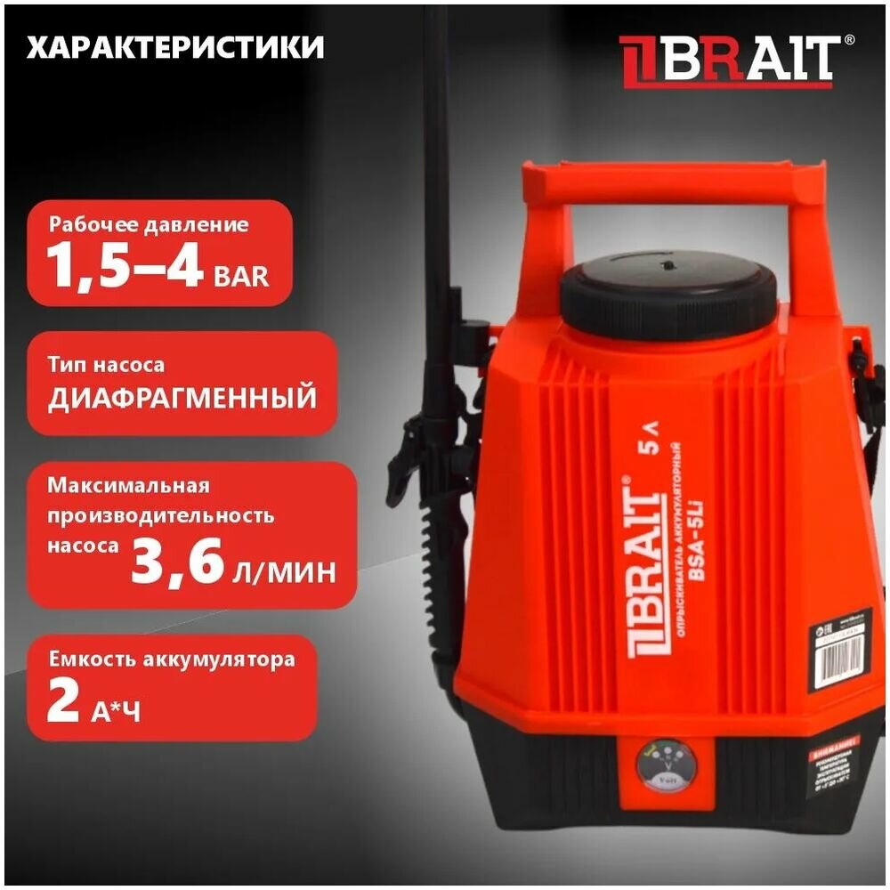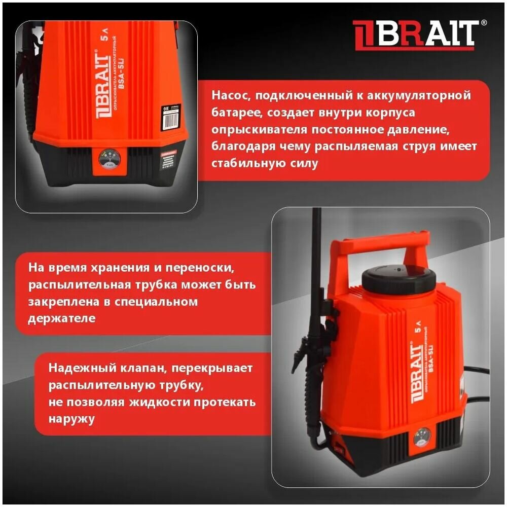 Опрыскиватель аккумуляторный BRAIT BSA-5Li (объем 5л, АКБ литий-ионный 12В, 2,5Ач) интересное: