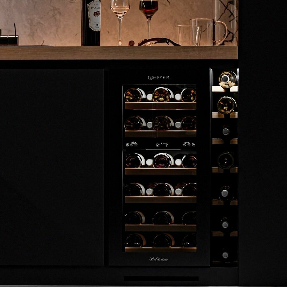 Винный шкаф Meyvel MV28NH-KBT2, двухзонный встраиваемый под столешницу на 28 бутылок интересное: