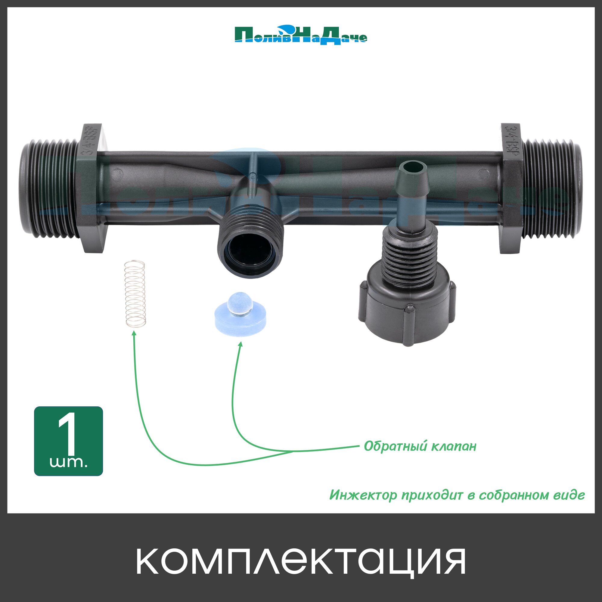 Инжектор Вентури для внесения удобрений 1", поток 1,82-6,34 м3/ч при 0,7-9,5 bar, мощность всасывания 34-279 л/ч
