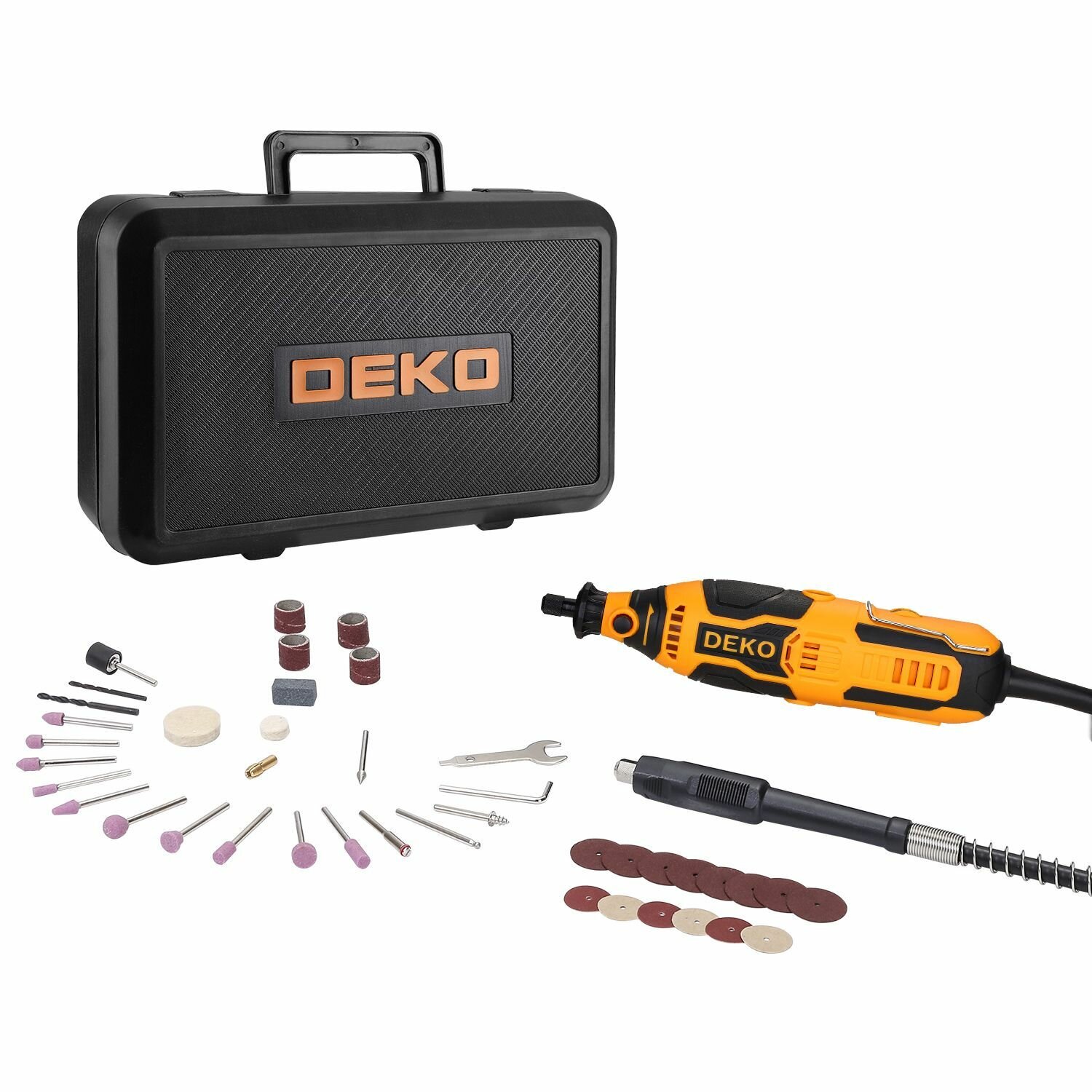 Гравер DEKO DKRT200E в кейсе + набор акс 43 шт (063-1411) оранжевый