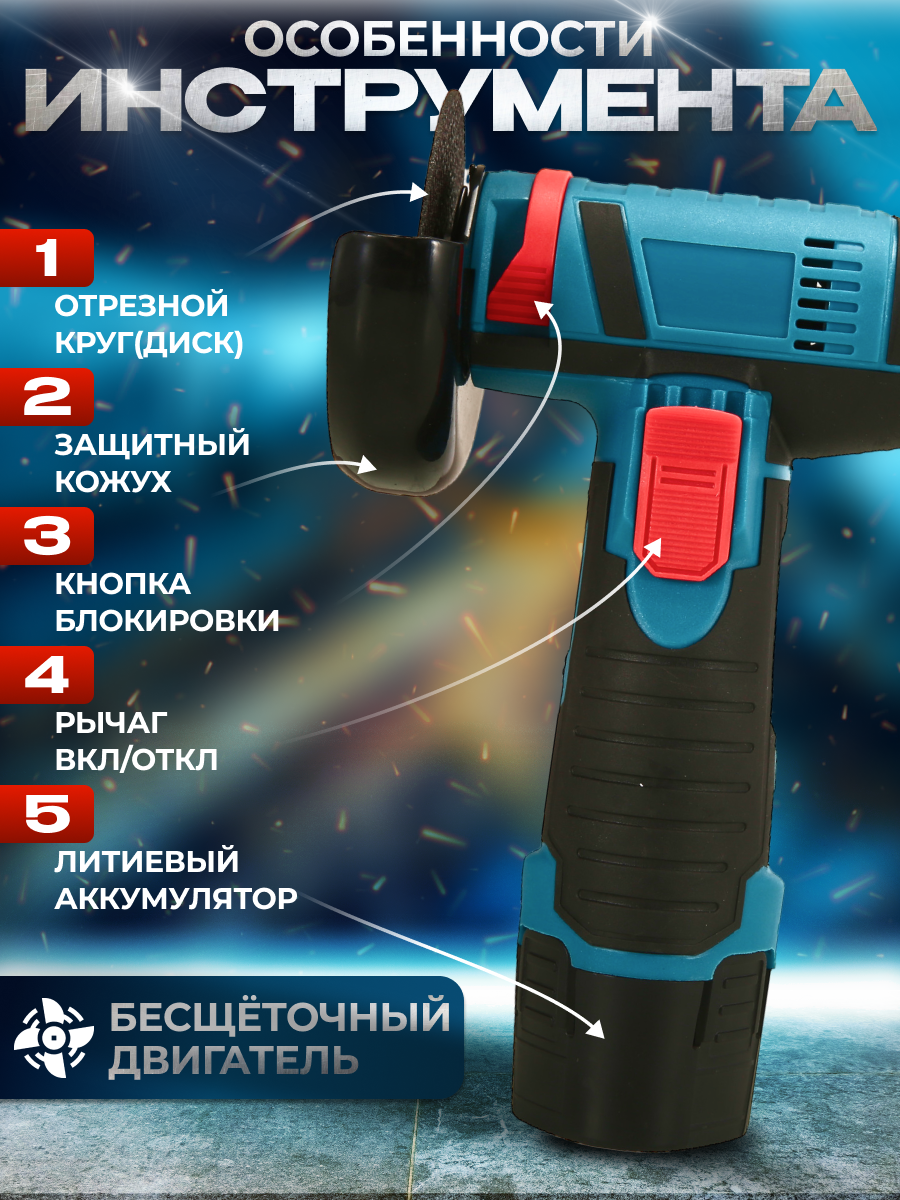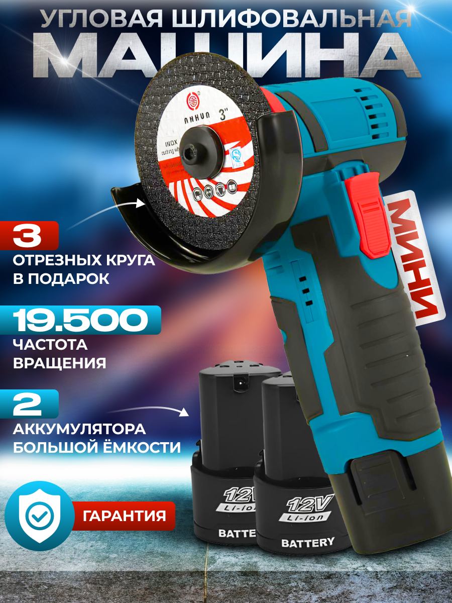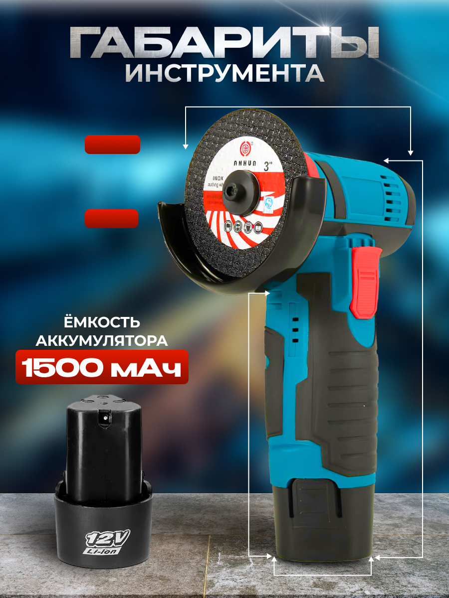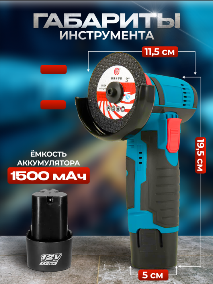 Аккумуляторная УШМ (мини отрезная машина) 12В, диски 76 мм, 2 АКБ 1.5 А/ч, кейс интересное: