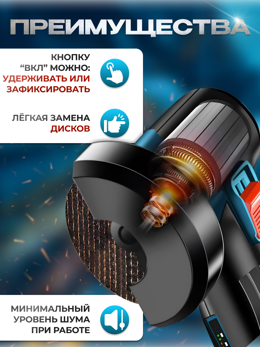 | Особенности конструкции | антивибрационная система / блокировка кнопки включения / регулировка положения кожуха без инструмента |