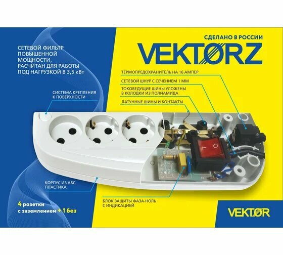 Купить Сетевые фильтры Vektor Сетевой фильтр Vektor Z 3.5 кВт белый 1.8м (для бытовой техники,повышенная мощность)