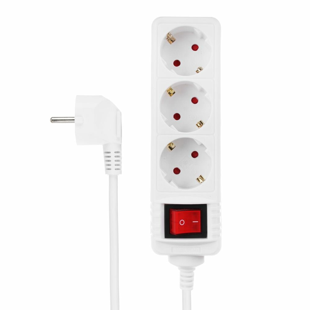 FORZA Удлинитель 3 гнезда, 2м, с зазем и выкл., евро, с защит. шторками, 16A 3500Вт