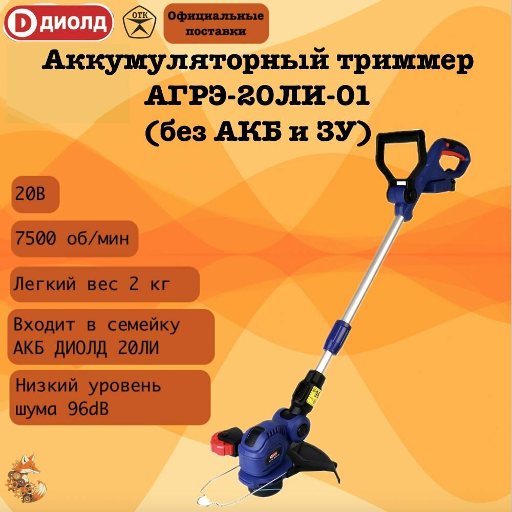 Триммер аккумуляторный диолд АГРЭ-20ЛИ-01 без АКБ и ЗУ интересное: