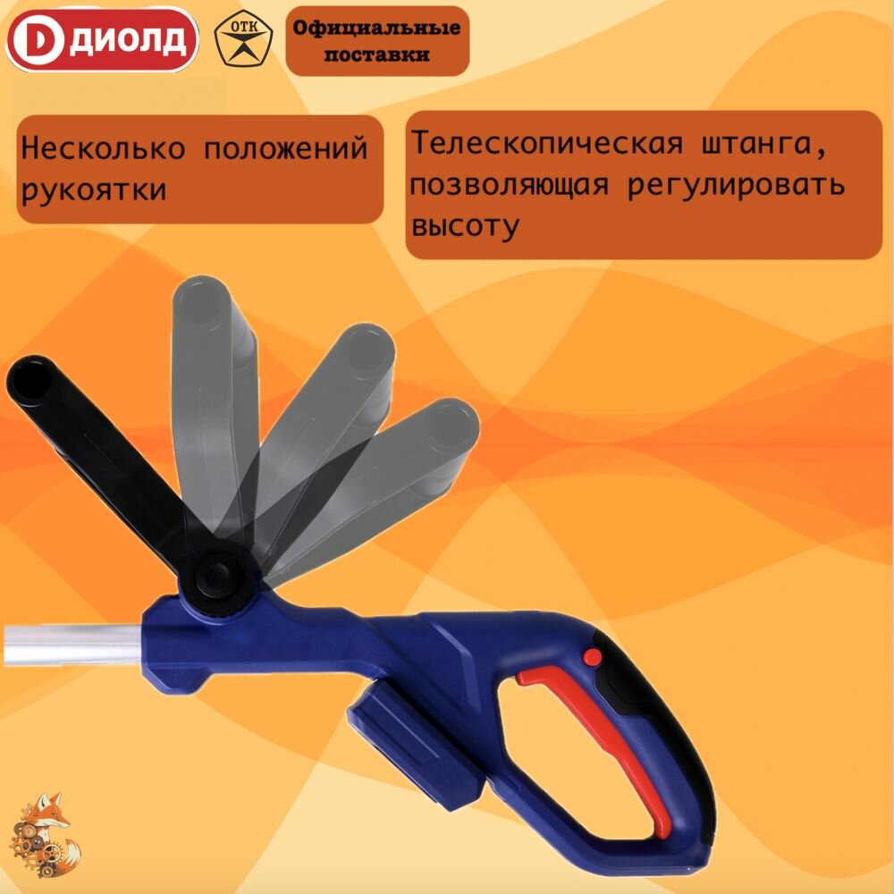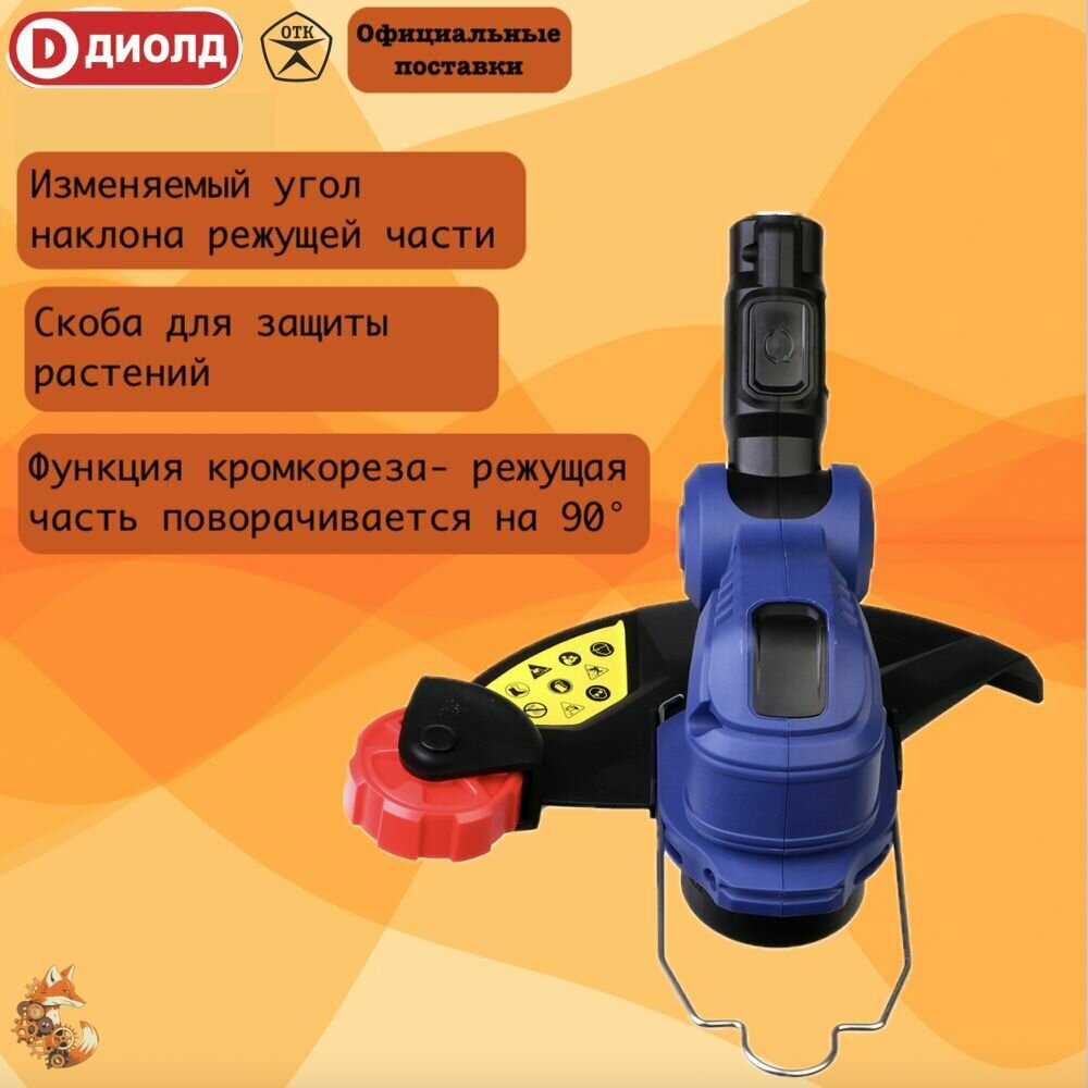 Триммер аккумуляторный садовый для травы/Аккумуляторная газонокосилка Диолд АГРЭ-20ЛИ-01, 7500 об/мин