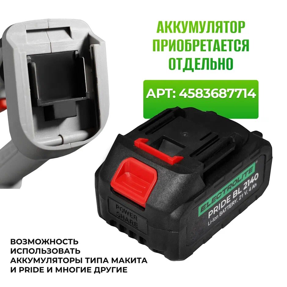 | Особенности | аккумулятор в комплект не входит |