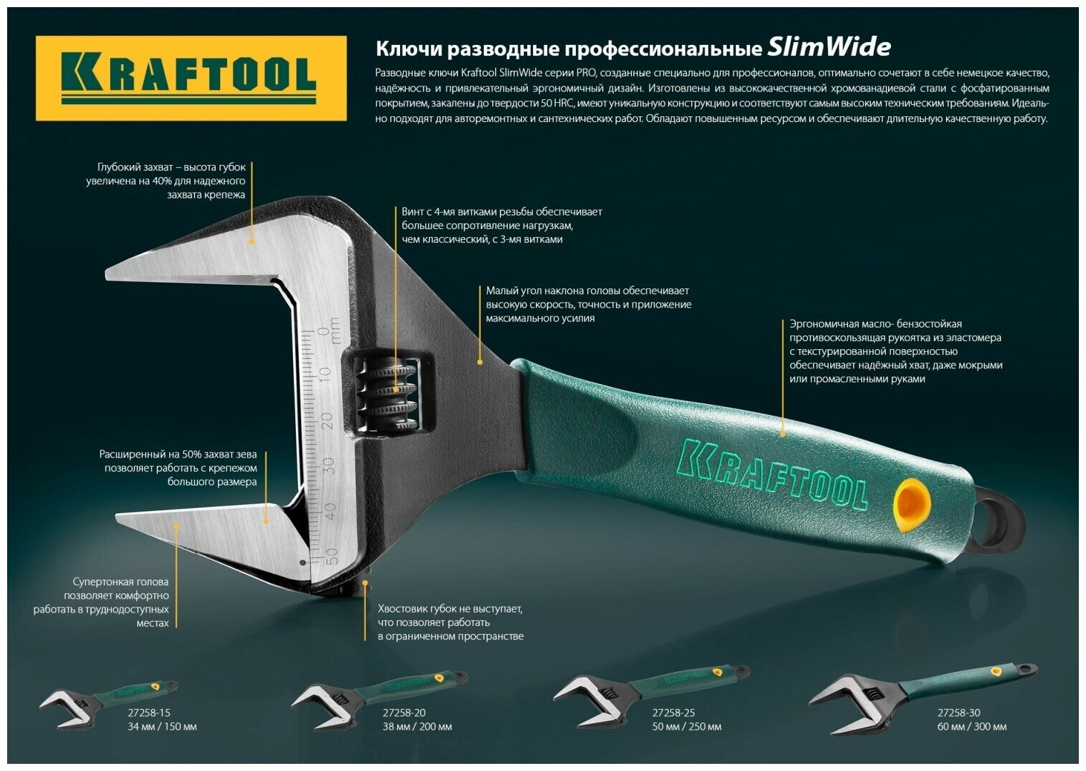KRAFTOOL Ключ разводной SlimWide, 250 / 50 мм, KRAFTOOL, ( 27258-25 )