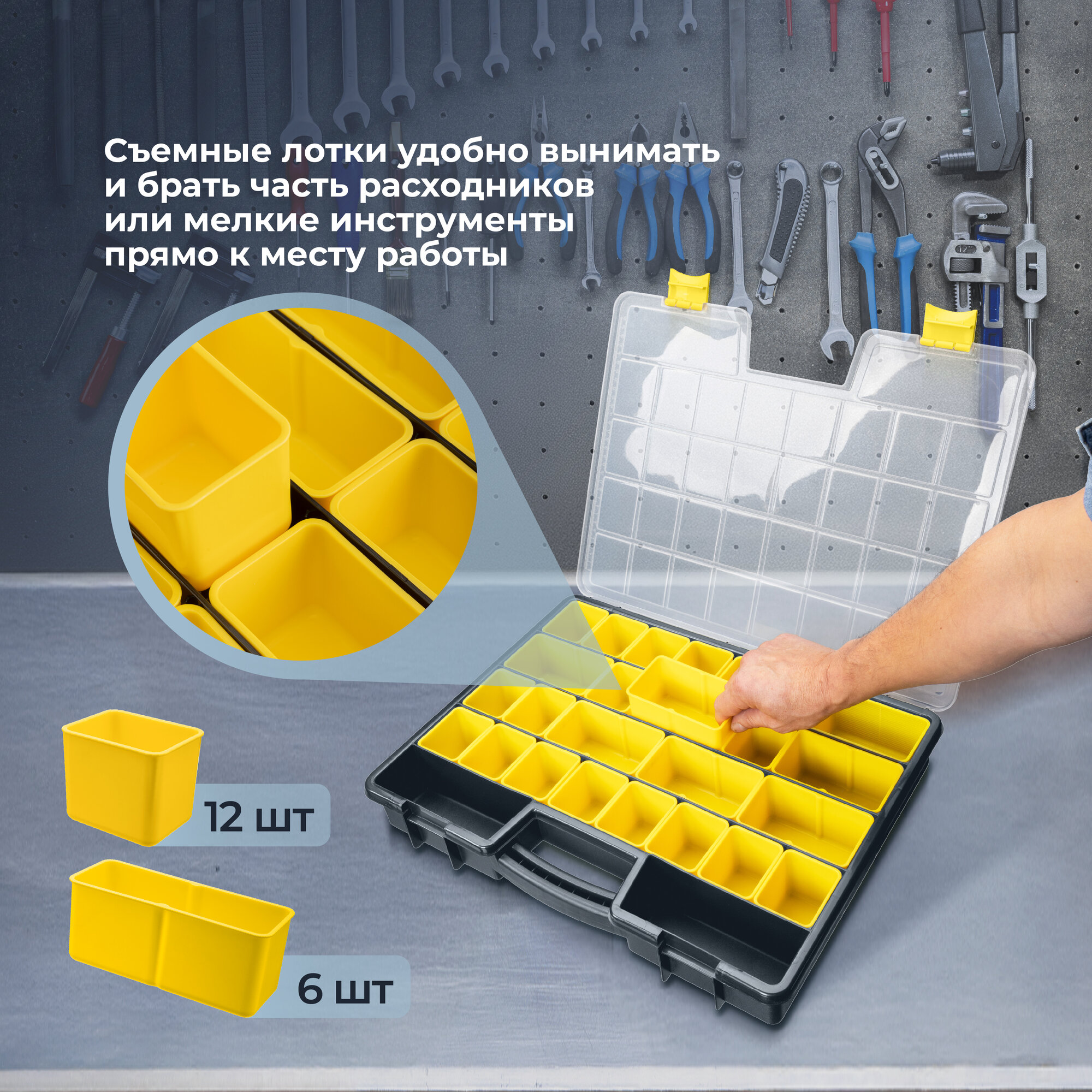 Органайзер с замками и ручкой "WORKER PRO 16", 390х295х60 мм, серый интересное: